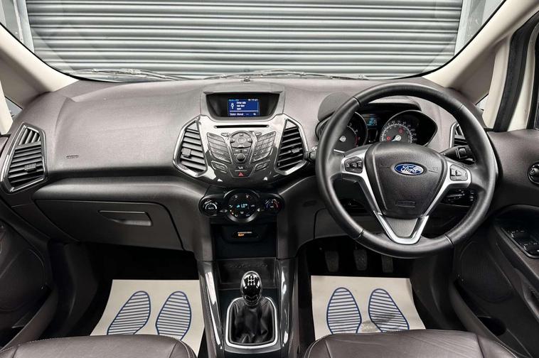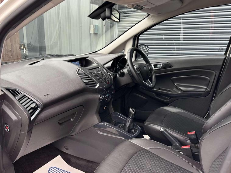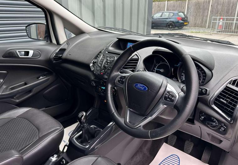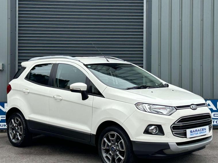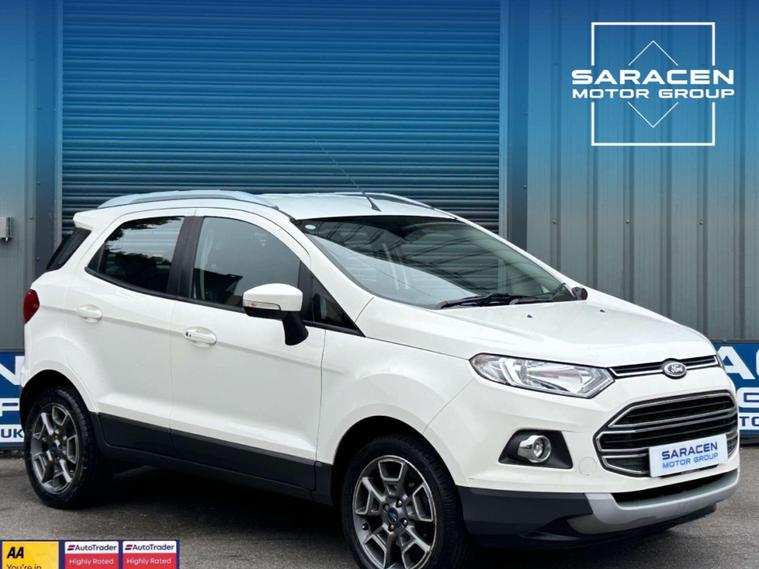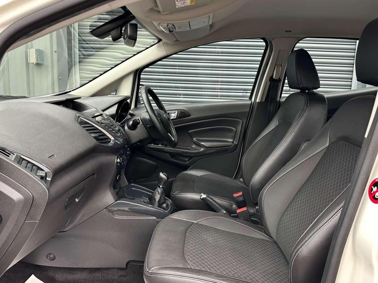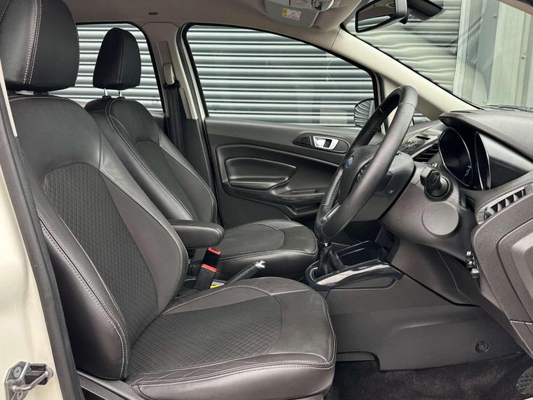 Ford EcoSport 1.0T EcoBoost Titanium SUV 5dr Petrol Manual 2WD Euro 5 ULEZ FREE. Finished in Diamond white with ebony half leather interior and contrast white. Fitted with an ivory headlining and aluminum effect trim finish.17'' alloy wheels, Ford premium sound system, Ford premium speakers, multifunction leather steering wheel, privacy Glass, DAB digital radio, cruise control, air conditioning, AUX/USB connection, Bluetooth phone preparation, heated front windscreen windscreen, power controlled door mirrors, remote central locking, automatic lights & wipersHere at Saracen Motor Group we have been awarded AA Platinum dealership recognition along with being nominated for best customer service by Autotrader for 2021, 2022, 2023, 2024 & 2025. We are a 5-star dealership with over 600 5-star reviews across all internet platforms including Autotrader and have been regarded as one of the best dealerships to buy from in the UK.Our preparation team have inspected to the highest level possible for the age and mileage of vehicle, You can rest assured your car has been cared for to our highest Standard, Service history, Logbook and the HPI certificate all present. With our location based in Battlesbridge in Essex you can enjoy a haggle-free buying experience where you can drive away the same day if prior arranged appointment, additional charges apply please see our website for details..