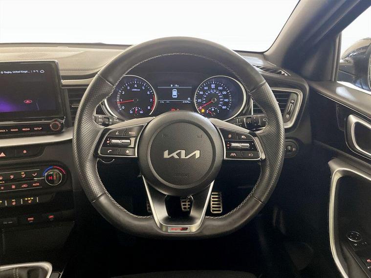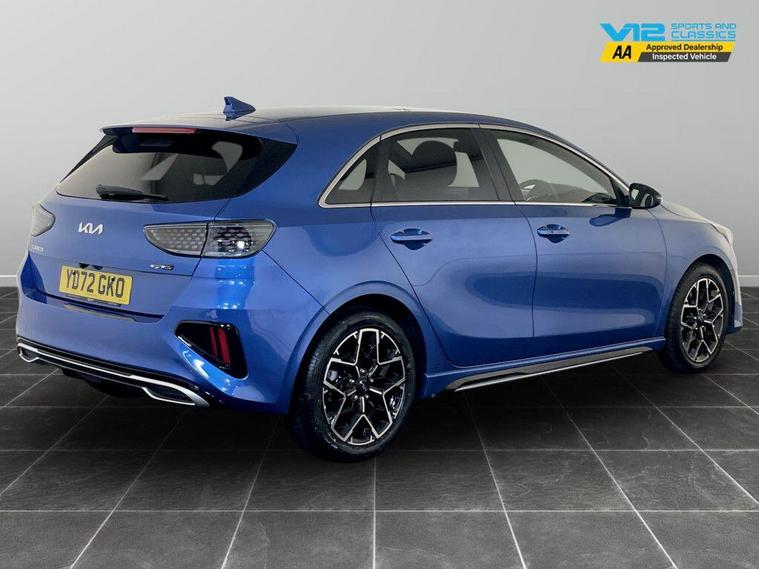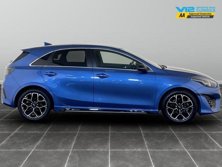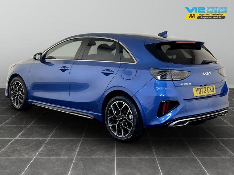 This 2022 Kia Ceed T-GDi GT-Line presents an exceptional ownership proposition with its remarkably low mileage of just 21, 590 miles, having been cherished by only one owner since new. This Euro 6 compliant model boasts a responsive 1.5 litre petrol engine, delivering an impressive 0-62mph acceleration in a swift 8.4 seconds. Inside, you'll find a host of desirable features designed for comfort and convenience, including heated front seats and a heated steering wheel, perfect for those colder mornings. The dual automatic air conditioning ensures a pleasant cabin temperature for all occupants, while the reversing camera system with dynamic guidelines and rear parking sensors make manoeuvring and parking effortless. The Kia Ceed GT-Line is designed to offer a superior driving experience compared to other vehicles in its class. Its large boot space provides ample room for shopping, luggage, or sports equipment, making it a practical choice for families and individuals alike. The combination of its spirited performance, advanced driver aids, and luxurious interior appointments, such as the heated seats and climate control, sets this particular Ceed apart, offering a refined and enjoyable journey every time you get behind the wheel.For peace of mind this vehicle has only had 1 registered owner and has completed a multi point AA dealer's website finance is also available.We are open 7 days a week and have more than 1500 cars to choose from.All our Euro 4 Petrol and Euro 6 Diesel vehicles meet the ULEZ standard.Vehicle specification can be found below. From time to time vehicles have manufacturer recalls notified. Please read our recall policy on our website for further information..