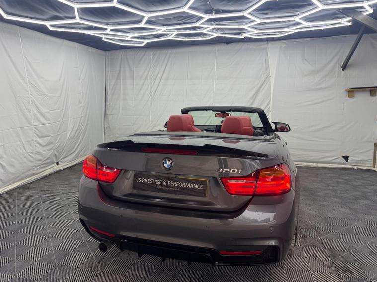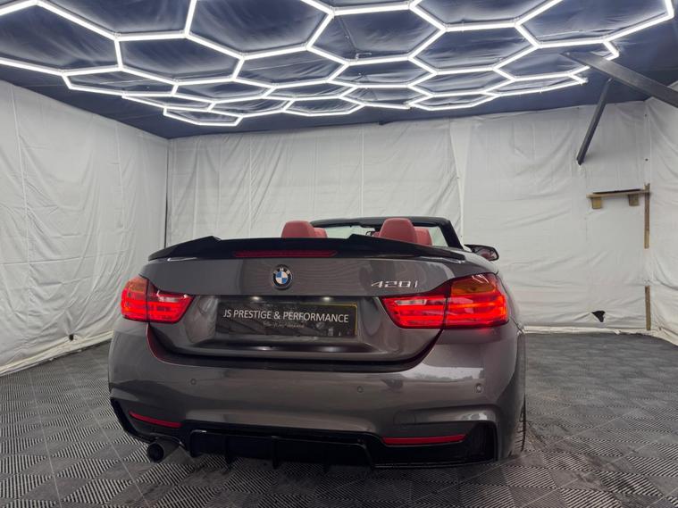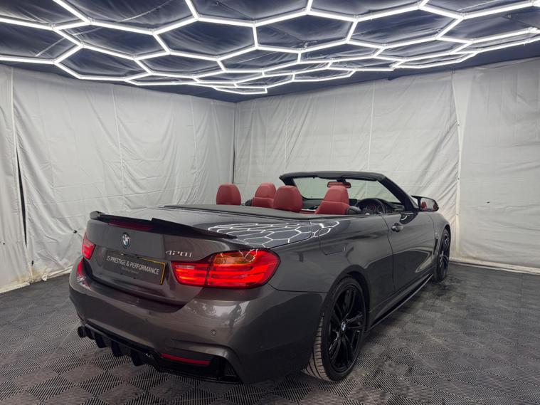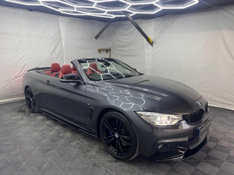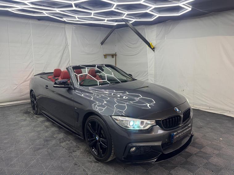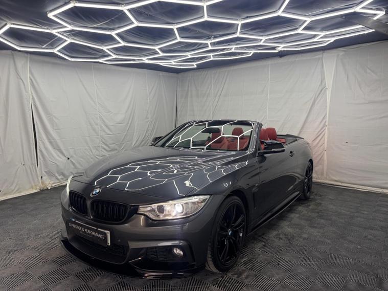 ***OVER £5000 WORTH OF EXTRAS!*** HERE AT JS PRESTIGE & PERFORMANCE WE ARE DELIGHTED TO OFFER YOU THIS STUNNING BMW 420I M SPORT CABRIOLET 2015(15) FINISHED WITH THE EYE CATCHING M PERFORMANCE KIT, ONLY 68K MILES, FULL SERVICE HISTORY (JUST SERVICED), GREY METALLIC, REDLEATHER, HARMON KARDON SOUND SYSTEM, PRO SAT NAV, HEATED SEATS, KNECK WARMER, PARKING SENSORS, PARKING PILOT, AUTO, PETROL, LEATHER INTERIOR, 19'' BLACK ALLOYS, BLUE M CALLIPERS, FRONT SPLITTER, BOOT SPOILER, SPLITTER, ALL OUR VEHICLES ARE SOLD WITH A 3 MONTHS PREMIUM WARRANTY FOR PEACE OF MIND FOR OUR CUSTOMERS WHICH IS INCLUDED WITHIN THE LIST PRICE, WITH THE OPTION TO EXTEND UP TO 3 YEARS ALL OUR CARS ARE HPI CLEAR AND ARE CHOSEN CAREFULLY AND PUT THROUGH A RIGOROUS MULTI POINT CHECK BEFORE THEY LEAVE OUR SITE, LOCATED IN NORTH LONDON, EASY ACCESS FROM M1, M25, CALL 01707512564 FOR VIEWINGS WHICH ARE BY APPOINTMENT ONLY! FOR ALL STOCK HAVE A LOOK AT OUR WEBSITE: https:/ dealer's website INSTAGRAM: jsprestigeperformance.