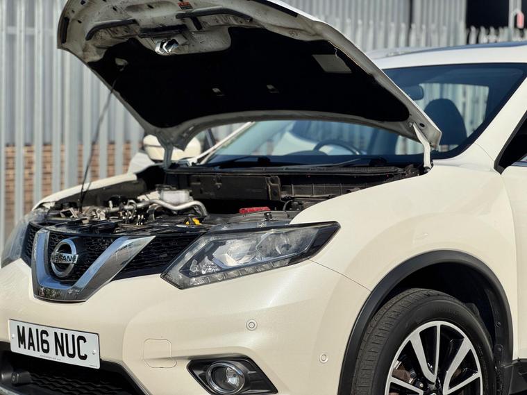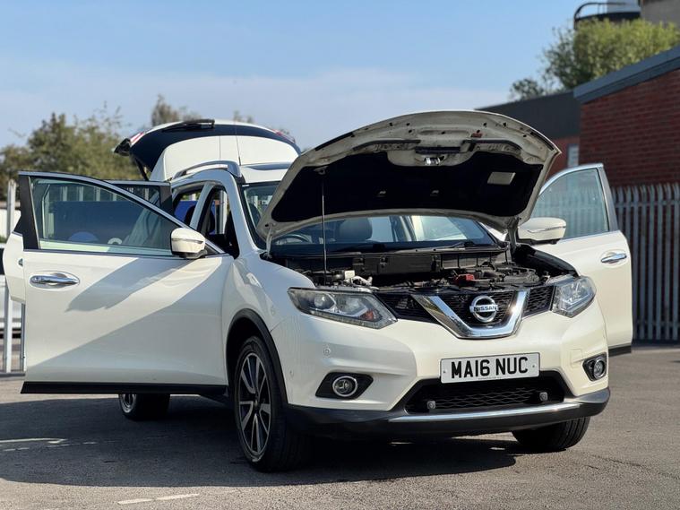 This 2016 Nissan X Trail dCi Tekna boasts a clear vehicle history and a recent service in August 2025 at 88, 700 miles, with its MOT valid until April 2026, offering peace of mind for its next owner. Powered by an efficient 1.6L Diesel engine meeting Euro 6 emissions standards, this Tekna trim level is equipped with a suite of advanced features. These include Bluetooth with microphone for seamless connectivity, the comprehensive Safety Shield with Blind Spot Assistance, and automatic dusk sensing headlights. For effortless parking and manoeuvring, it features an Around View Monitor with front, rear, and side cameras, providing a 360 degree view, complemented by Bi-LED headlights for superior illumination.This Nissan X Trail stands out with its impressive fuel economy, achieving up to 55 miles per gallon, which is a significant advantage over many similar vehicles. Furthermore, its low CO2 emissions and low insurance group rating contribute to lower running costs, making it a more economical choice. The generous boot space ensures practicality for everyday use and longer journeys, further enhancing its appeal as a well rounded and cost effective family SUV. A 3 month warranty is also included, adding an extra layer of confidence..