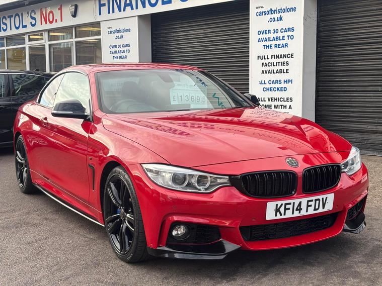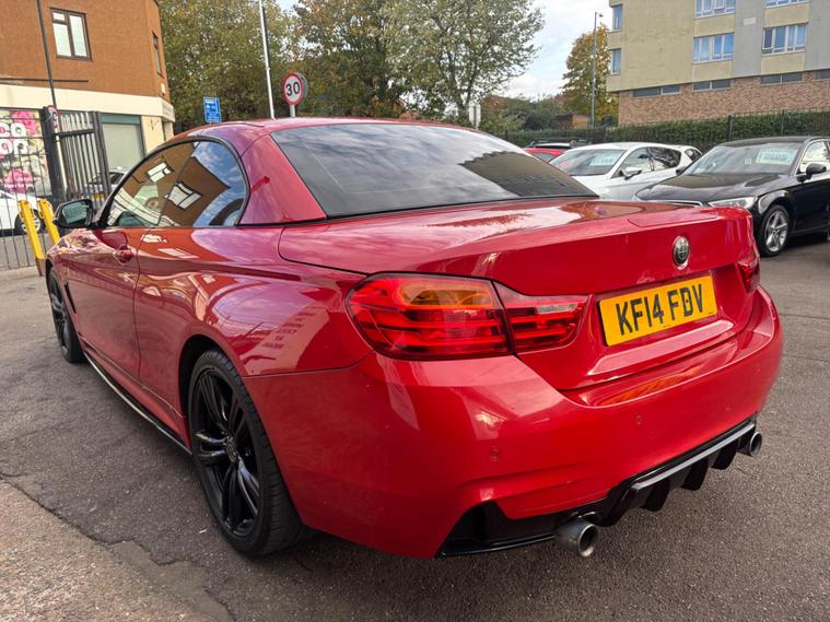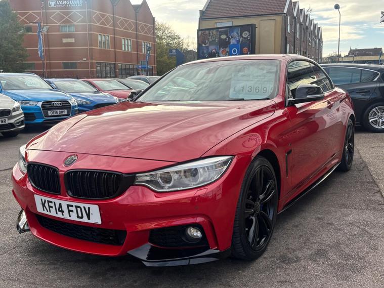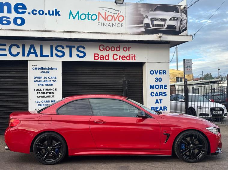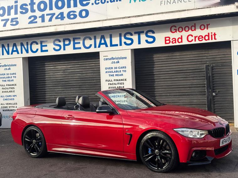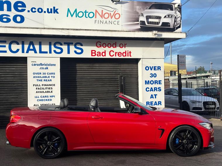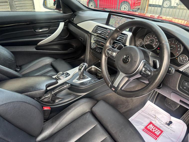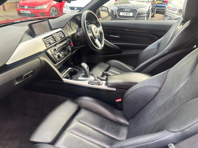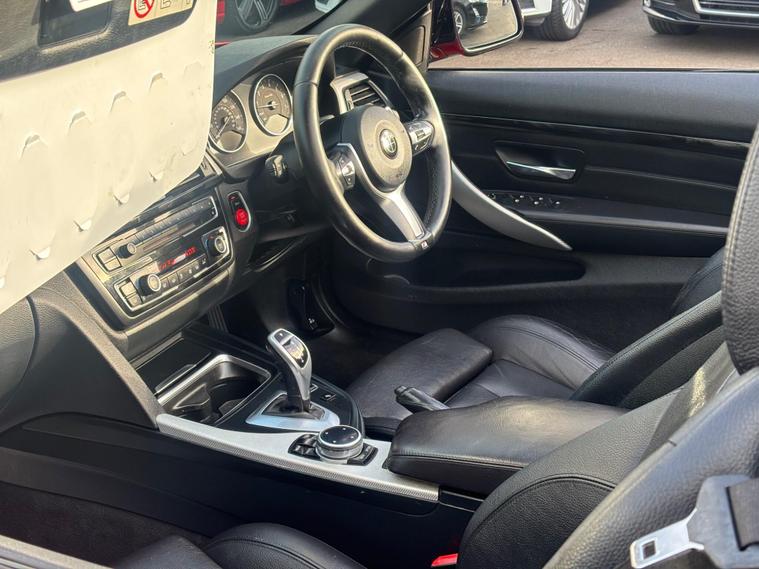 HERE WE HAVE ON SALE THE SUPERB BMW 4 SERIES 3.0 435i M SPORT AUTO CONVERTABLE EURO 6 FINISHED IN METALLIC dealer's website WITH FULL BLACK LEATHER SEATS, SATELLITE NAVIGATION, HEATED FRONT SEATS, REAR PARKING SENSORS, CRUISE CONTROL, BLUETOOTH, BMW ONLINE SERVICES, IDRIVE CONTROLLER WITH SHORTCUT BUTTONS, TWO ZONE AIR CONDITIONING, COMFORT GO KEYLESS ENGINE START, DAB DIGITAL RADIO, MULTIFUNCTIONAL STEERING WHEEL, ELECTRIC WINDOWS, ELECTRIC AND HEATED MIRRORS, TYRE PRESSURE MONITORING SERVICES, THATCHAM 1 ALARM WITH REMOTE CONTROL.................THIS VEHICLE COMES WITH FULL BMW DEALERSHIP SERVICE HISTORY CONSISTING FROM 17671 MILES, 26593 MILES, 31094 MILES, 35179 MILES AND 57251 MILES MEANING THIS VEHICLE HAS BEEN MAINTAINED TO A HIGH STANDARD.......................THIS VEHICLE WILL BE SERVICED AT POINT OF SALE ...................THIS VEHICLE PRESENTS IN EXCELLENT CONDITION THROUGHOUT AND DRIVES LIKEWISE....................VIEWING ESSENTIAL....................FINANCE AVAILABLE ON REQUEST..