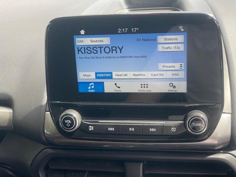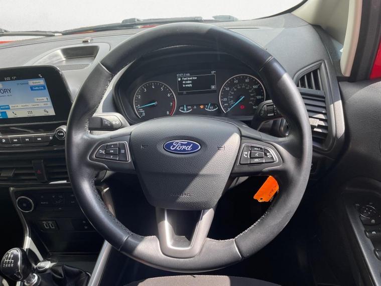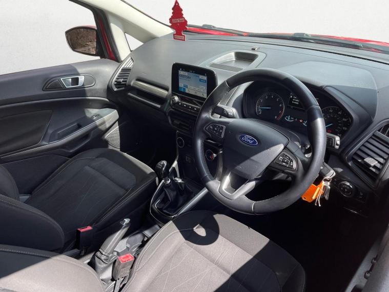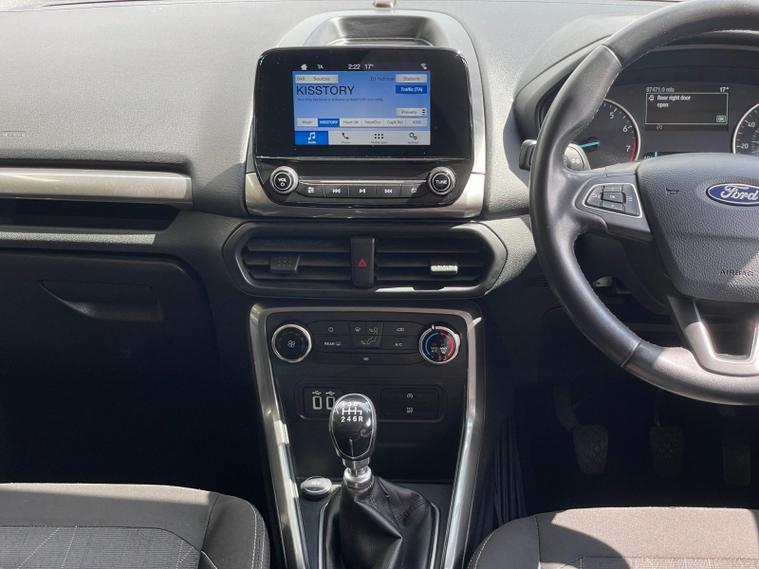 Discover this 2018 Ford EcoSport Zetec, a 1.0L petrol model that offers an impressive 53 miles per gallon. This Euro 6 compliant vehicle is equipped with Ford DAB Radio featuring Ford SYNC3, which seamlessly integrates with Apple CarPlay and Android Auto, allowing you to connect your smartphone for navigation, music, and calls via Bluetooth. It also boasts manual air conditioning for your comfort.The EcoSport Zetec stands out with its excellent fuel economy, demonstrating how it is more economical to run than many other vehicles in its class. Furthermore, its low CO2 emissions contribute to a more environmentally friendly driving experience, making it a sensible choice for those mindful of their impact..