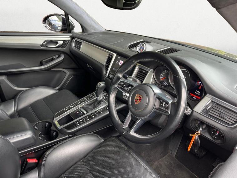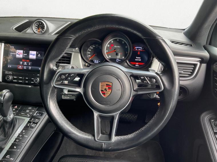 This 2018 Porsche Macan T V6 Turbo Performance offers an exhilarating driving experience with its potent 3.6L petrol engine and four wheel drive system. As a Euro 6 compliant vehicle, it meets modern emissions standards. This particular model boasts a comprehensive suite of features designed for comfort and convenience, including the Porsche Communication Management system with navigation and Bluetooth, Bi-Xenon headlights with automatic activation and welcome home lighting, and a three zone climate control system. For audiophiles, the BOSE Surround Sound System delivers an immersive listening experience.The performance of this Macan is truly exceptional, evidenced by its rapid 0-62mph acceleration in just 4.4 seconds, a figure that sets it apart from many other vehicles in its class. This impressive speed is complemented by a large boot space, offering practicality for everyday use and longer journeys. The combination of its dynamic capabilities, advanced technology, and generous storage makes this Porsche Macan Turbo Performance a compelling choice for those seeking a blend of sportiness and utility..