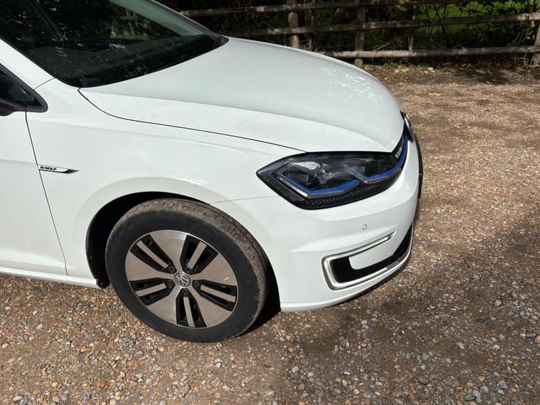 Discover a smarter way to drive with this 2018 Volkswagen e Golf, a superb example of electric motoring. This e Golf variant boasts a 36 kWh battery, offering a maximum range of 186 miles when new, making it ideal for both daily commutes and longer journeys. You can enjoy the convenience of home charging, with a full charge taking approximately 5 hours and 20 minutes using a 7kW charger, and for those times you need a quick top up, an 80% charge can be achieved in just 40 minutes at a compatible public charging station.This Volkswagen e Golf is equipped with a suite of impressive features designed to enhance your driving experience. Navigate with ease using the Discover Navigation Pro Touch Screen system, complete with DVD radio and integrated voice activation, plus Car Net Guide and Inform Plus. The Convenience Pack ensures automatic headlights, while Adaptive Cruise Control helps maintain a set speed and distance from the vehicle ahead. Parking is made simpler with front and rear parking sensors, and the car benefits from bright and efficient LED headlights. Furthermore, the e Golf offers a generous boot space, providing ample room for your shopping or luggage, setting it apart from many other electric vehicles in its class..