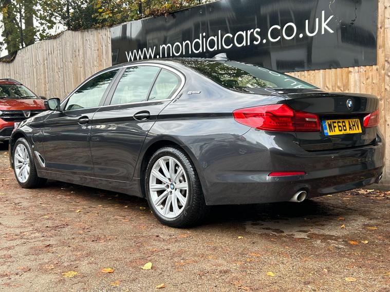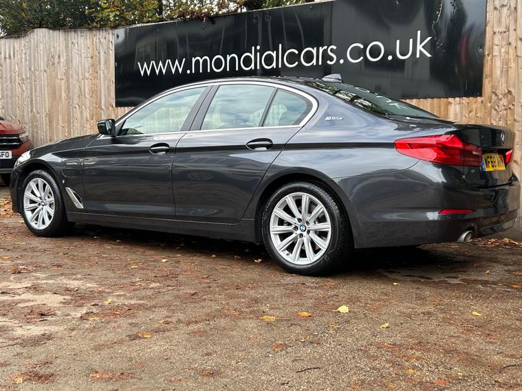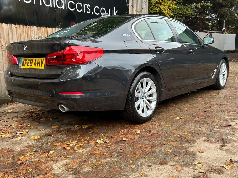 Discover this exceptional 2018 BMW 530e SE, boasting remarkably low mileage for its year at just 39, 000 miles. This plug in hybrid model combines a 2.0 litre petrol engine with electric power, adhering to the Euro 6 emission standards. It comes equipped with stylish 18 inch Light V Spoke Style 684 alloy wheels fitted with run flat tyres, and benefits from the convenience of Apple CarPlay preparation, including Bluetooth connectivity.The SE trim level ensures a refined driving experience, enhanced by features such as eDrive Services for optimised hybrid performance and LED headlights for superior visibility. The automatic rain sensor, which also activates the headlights, adds to the ease of driving. These carefully selected features, alongside its impressive provenance, position this BMW 5 Series as a distinguished choice among similar vehicles..