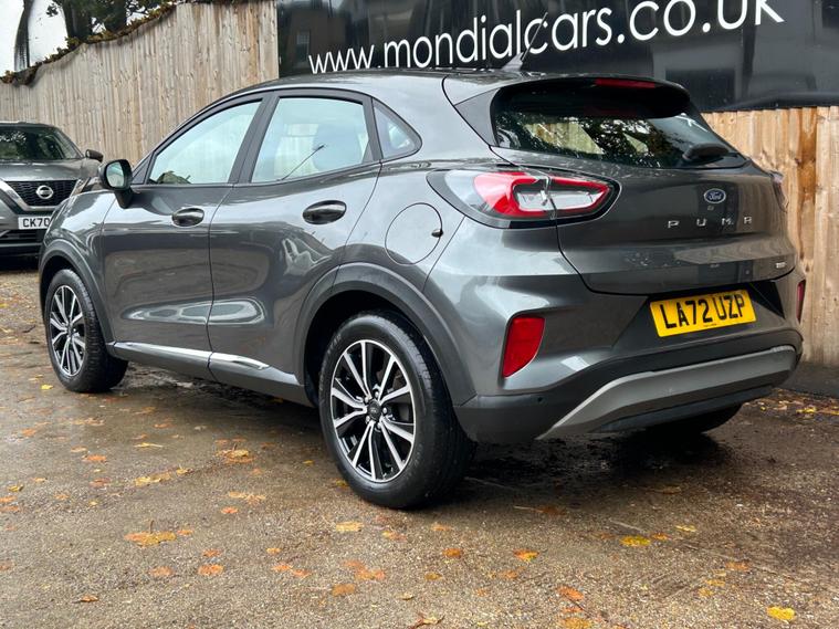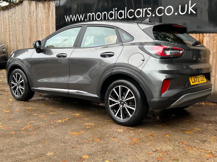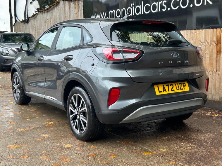 This 2023 Ford Puma T Titanium is a superb example, having had only one owner since new. This stylish compact SUV boasts a responsive 1.0L Petrol Hybrid engine, meeting Euro 6 emissions standards. Inside, you'll find a premium feel with an Aluminium Gear Knob and Electronic Air Temperature Control for effortless climate management. For your convenience and safety, it includes Rear Parking Sensors with parking assistance, and the Ford SYNC 3 Navigation system seamlessly integrates your smartphone via Android Auto and Apple CarPlay, with Bluetooth connectivity also available. Privacy Glass adds a touch of sophistication and security.The Ford Puma T Titanium is designed to offer a superior driving experience, evident in its thoughtful features. Its low insurance group rating means more affordable ownership compared to similar vehicles. The combination of the efficient hybrid powertrain, advanced infotainment system, and practical parking aids makes this Puma a well rounded and appealing choice for everyday driving..