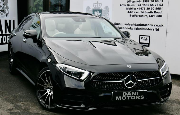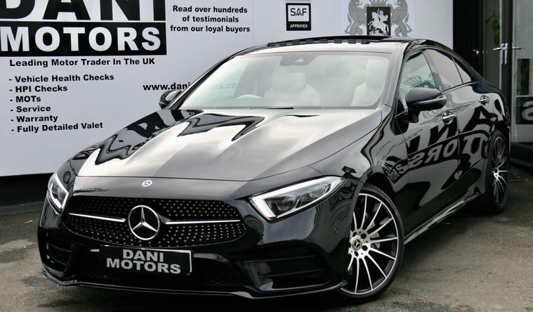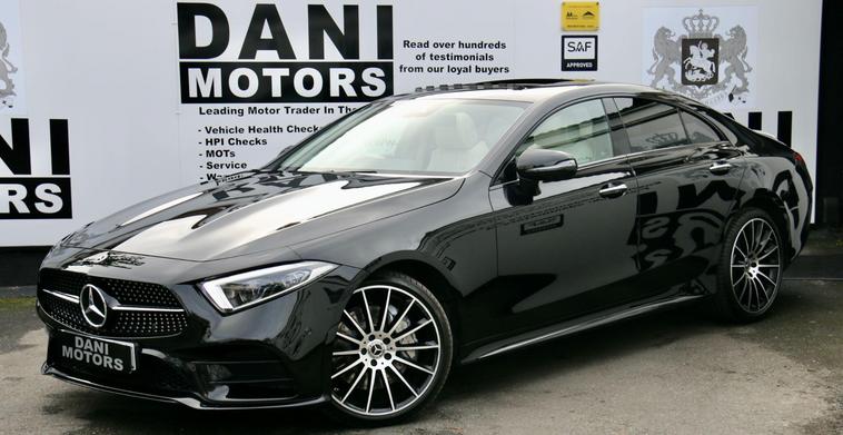 This absolutely stunning CLS 2.9 CLS400d AMG Line Night Edition (Premium Plus) finished in Black features an array of extras from factory includes a MEGA spec, Sunroof, Burmeister sound system, 360º Camera system, Scented perfume diffuser, Blind spot assist, Apple car play and Android auto prep, Electric tailgate, Heated memory front seats, Ambient lighting, Alloy Wheels, Navigation System, Bluetooth, DAB Radio and so much more. This vehicle is ULEZ Compliant. FREE 12 Months MOT provided upon request, We offer optional Ceramic Coating to all our vehicles for added paintwork protection. You may see reflections of other surrounding objects. Full Dealer Facilities. HPI Clear, Service History, Only 1 Owner from New, Brilliant Value. All our cars undergo a comprehensive 150 point check together with a brake inspection. Mechanical Report and HPI Certificate provided (upon request). Here at Dani Motors, quality matters to us. Not just quality service but the high quality of our vehicles, and the standard at which they hit our forecourts. Our sole purpose is to deliver the highest quality cars possible, both mechanically and aesthetically. You can also reserve the car until you can come and take it for a test drive, so you do not miss out! Buy your next car from us, as we are a trusted used car dealership. We also provide finance from a few UK's leading lenders, an optional extra 5-day drive-away insurance, part exchange so you can get everything sorted in one place. Every car has passed a rigorous pre-sales inspection in our workshop, which are home to our technicians..