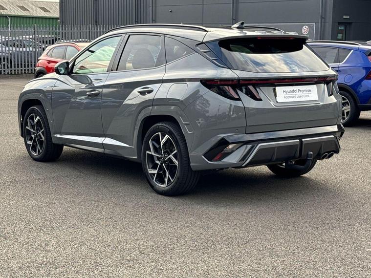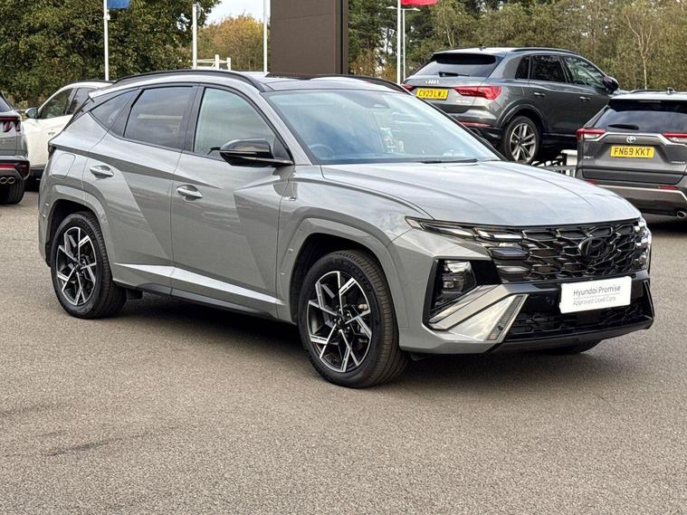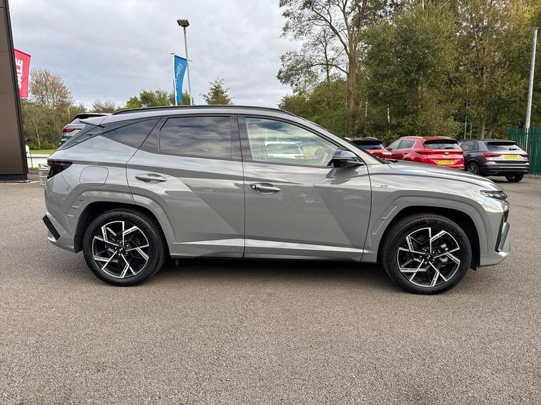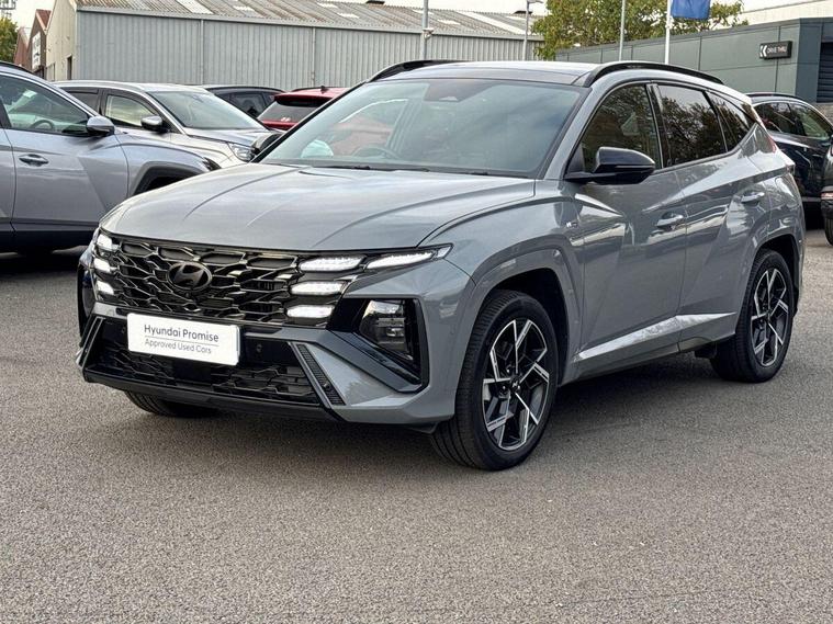 Hello and thank you for taking the time to view our Used Car Listing – This is a 2024 (24) Hyundai Tucson 1.6 T-GDi Plug-in Hybrid N Line S Automatic 4WD, finished in elegant Shadow Grey, offering the perfect combination of striking design, advanced technology, and plug-in hybrid efficiency.With just 5, 282 miles, this Tucson represents outstanding value and comes with the remainder of Hyundai’s 5-Year Unlimited Mileage Warranty, giving you total peace of mind.Powered by a 1.6-litre turbocharged petrol engine paired with a 13.8 kWh battery, the Tucson Plug-in Hybrid produces a total of 253 PS and delivers remarkable all-wheel-drive performance. It can travel up to 38 miles in pure electric mode, perfect for short commutes or city driving — while offering effortless long-distance capability when needed.Charging is simple and flexible, with a full charge taking around 2 hours using a home wallbox, giving you the best of both electric and petrol power.As the top-of-the-range N Line S, this Tucson is packed with premium features, including:Panoramic Glass Roof – bright, open, and airy cabin feelFull Leather & Suede Sports Interior with Heated & Ventilated Front Seats10.25” Touchscreen Navigation with Apple CarPlay™ & Android Auto™360° Surround View Camera & Front Parking SensorsSmart Electric Tailgate & Keyless Entry with Push-Button StartHeated Steering Wheel & Dual-Zone Climate ControlAdaptive Cruise Control & Lane Keep AssistBOSE Premium Sound SystemN Line Styling Pack – aggressive front/rear bumpers, red stitching, 19” alloysPlug-in Charging Cable IncludedThis Tucson Plug-in Hybrid delivers the ultimate in power, control, and efficiency, combining everyday practicality with thrilling performance and Hyundai’s signature reliability.Call us today to arrange your test drive, request your bespoke video walkaround, or reserve this stunning car online.Thank you again for taking the time to view our listing –Hutchings – You Drive, our passion..