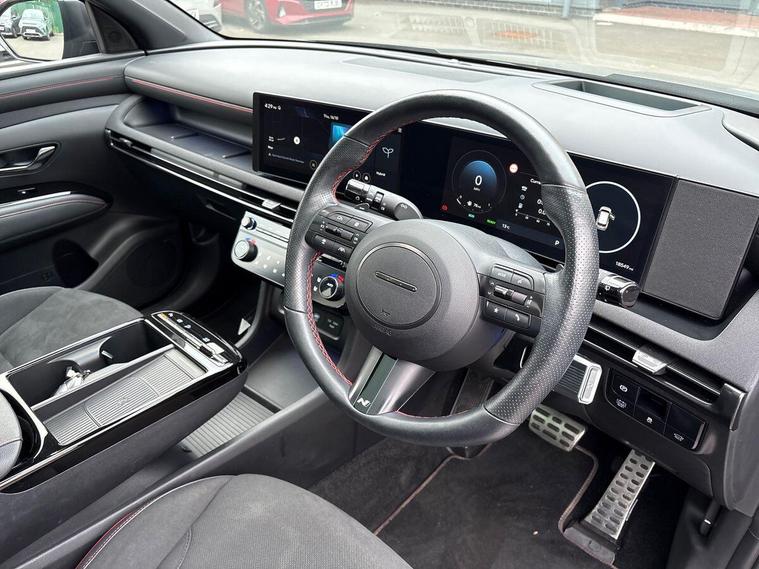 Hello and thank you for taking the time to view our Used Car Listing – This is a 2024 (24) Hyundai Tucson 1.6 T-GDi Hybrid N Line S Automatic, finished in sophisticated EcoTronic Grey, combining sporty styling, cutting-edge technology, and exceptional comfort in one of the UK’s best-selling SUVs.With just 9, 884 miles, this nearly-new example offers all the benefits of a new car with fantastic savings and the reassurance of the remainder of Hyundai’s 5-Year Unlimited Mileage Warranty.Powered by the 215 PS petrol hybrid engine, the Tucson delivers effortless performance and impressive efficiency, supported by Hyundai’s advanced hybrid system — providing smooth automatic driving and reduced emissions without compromise.As the range-topping N Line S, this model boasts an incredible specification, including:✅ Panoramic Glass Roof – floods the cabin with natural light✅ Full Leather & Suede N Line Sports Interior with Heated & Ventilated Front Seats✅ 10.25” Touchscreen Navigation with Apple CarPlay™ & Android Auto™✅ 360° Surround View Camera with Front & Rear Sensors✅ Smart Electric Tailgate & Keyless Entry with Push-Button Start✅ Heated Steering Wheel & Dual-Zone Climate Control✅ Adaptive Cruise Control with Lane Keep Assist✅ Premium BOSE Sound System – rich, immersive audio✅ Striking N Line Design Pack – with sports bumpers, red accents & 19” N Line alloysThe Tucson’s bold design, outstanding comfort, and hybrid efficiency make it a perfect SUV for families and professionals alike.? Call us today to arrange your test drive, request your bespoke video walkaround, or reserve this car online.Thank you again for taking the time to view our listing –Hutchings – You Drive, our passion..