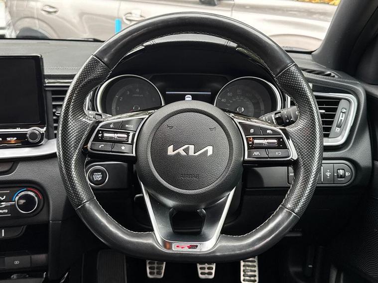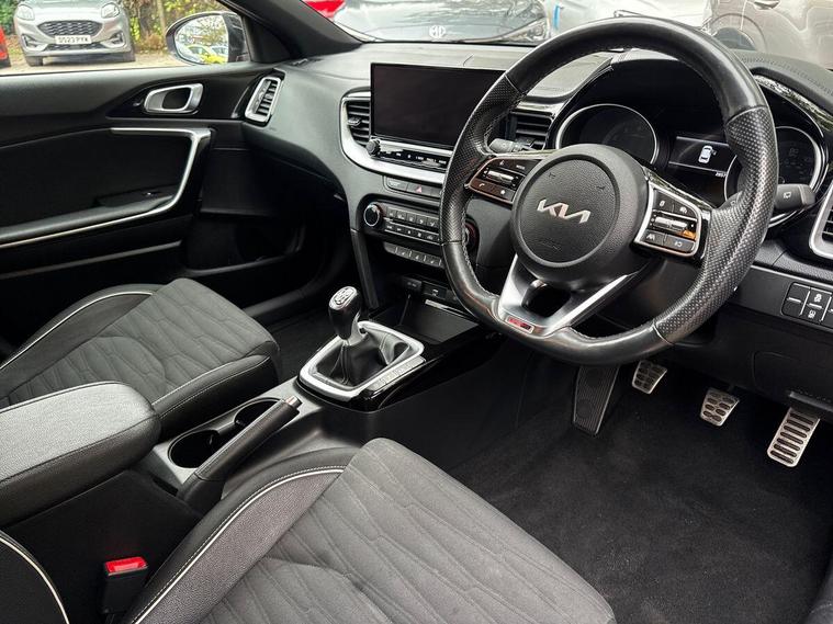 This 2022 Kia Ceed T GDi GT Line presents an exceptional opportunity with its remarkably low mileage of just 28, 571 miles. This Euro 6 compliant petrol model boasts a responsive 1.5 litre engine, offering an engaging driving experience with a 0-62mph acceleration time of 8.4 seconds. The GT Line trim ensures a well equipped interior, featuring a convenient Reversing Camera System with Dynamic Guidelines for effortless parking, alongside seamless integration of your smartphone through both Android Auto and Apple CarPlay, both complete with voice control.Further enhancing your journeys, the Ceed includes Bluetooth connectivity with voice recognition for hands free calls and music streaming, and Dual Automatic Air Conditioning to maintain the perfect cabin temperature for all occupants. You'll also appreciate the generous boot space, making it ideal for shopping trips or weekend getaways. These features, combined with its efficient performance and low mileage, position this Kia Ceed GT Line as a standout choice in its class..