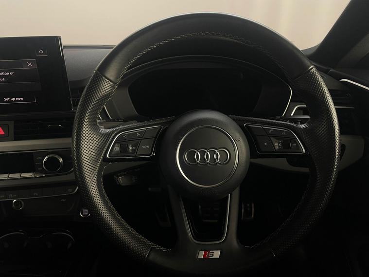 - High Multi-Function 3-Spoke Leather Steering Wheel with Grips in Perforated Leather and S Badging
