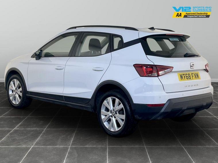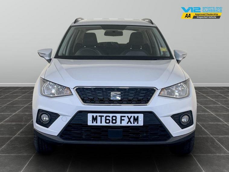 This 2018 SEAT Arona TSI SE Technology is a great choice for those seeking an economical and well equipped compact SUV. Powered by a 1.0 litre Euro 6 petrol engine, this model offers a fuel economy of up to 49 miles per gallon. The SE Technology trim ensures you have a comfortable and connected driving experience, featuring air conditioning, Bluetooth audio streaming with a handsfree system, and auto headlights. For added convenience and safety, it also includes rear parking sensors and the Connectivity Pack Plus with wireless phone charging.For peace of mind this vehicle has completed a multi point AA dealer's website finance is also available.We are open 7 days a week and have more than 1500 cars to choose from.All our Euro 4 Petrol and Euro 6 Diesel vehicles meet the ULEZ standard.Vehicle specification can be found below. From time to time vehicles have manufacturer recalls notified. Please read our recall policy on our website for further information..