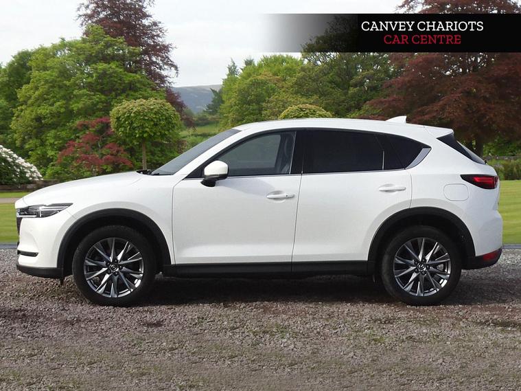 This 2021 Mazda CX-5 SKYACTIV-D GT Sport is a superb example, having been cherished by only one owner since new. This stylish SUV boasts a powerful yet efficient 2.2 litre Euro 6 diesel engine, paired with a smooth four wheel drive system for confident handling in all conditions. The GT Sport trim level ensures a premium experience, featuring an integrated Bluetooth system for seamless connectivity and dusk sensing headlights that automatically illuminate your path.You'll enjoy an immersive audio experience thanks to the AM-FM-DAB radio with a 10 speaker Bose sound system. Safety is paramount, with Blind Spot Monitoring and Rear Cross Traffic Alert providing an extra layer of awareness, complemented by front and rear parking sensors for effortless manoeuvring. This CX-5 also offers impressive practicality with its large boot space, making it ideal for families and adventurers alike. Furthermore, its excellent fuel economy of up to 45 mpg and a low insurance group highlight how this vehicle offers great value and lower running costs compared to similar models..