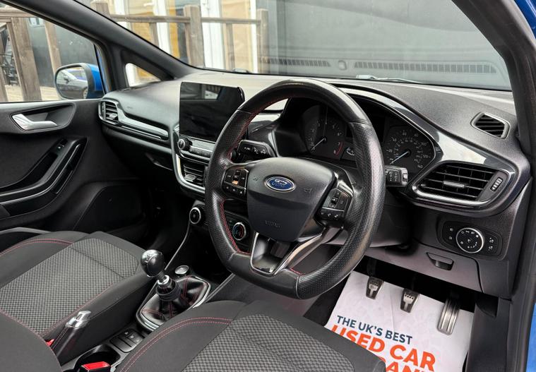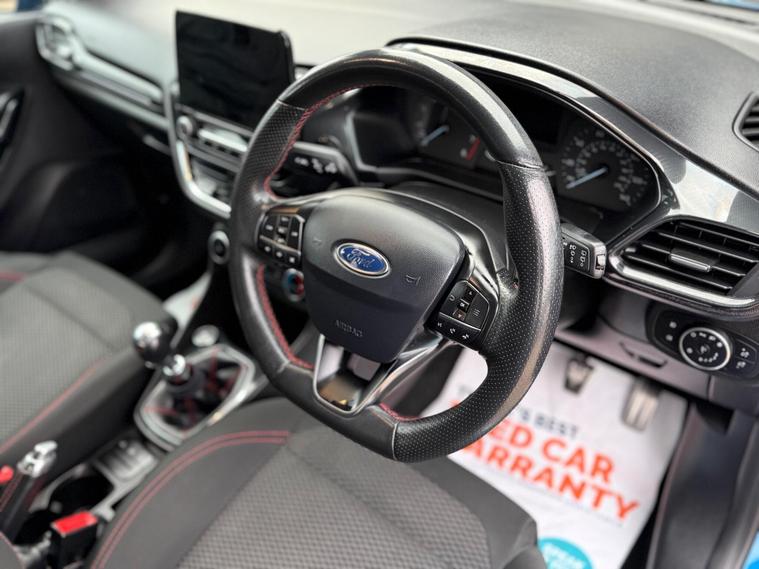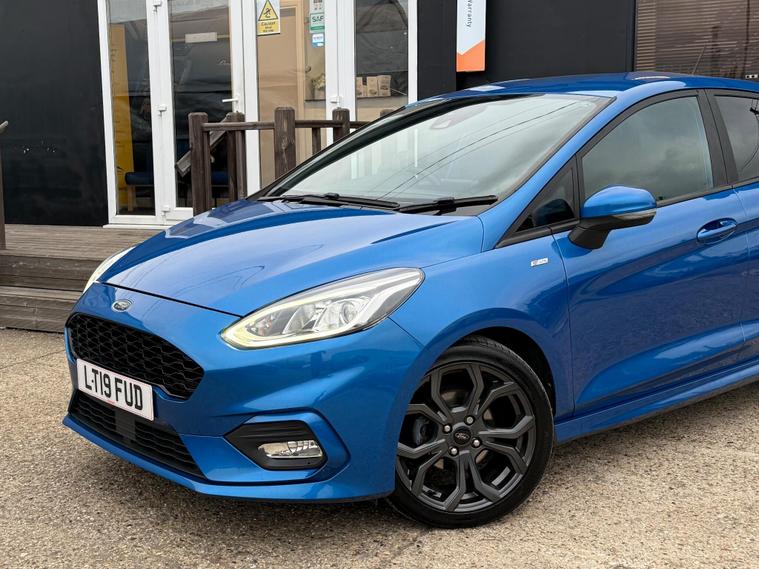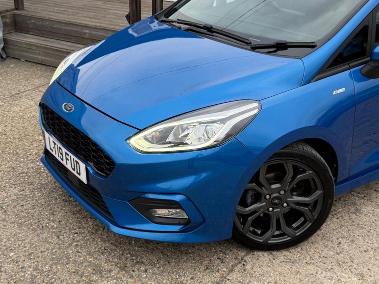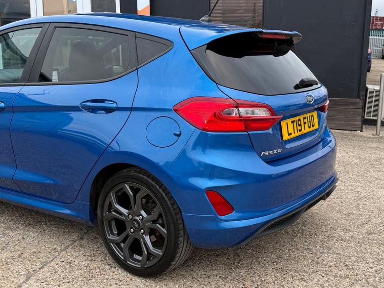 VL Autos are excited to offer a 2019 FORD FIESTA for sale. This vehicle is a stunning example of a well-maintained car, with a blue colour that is sure to turn heads. The FORD FIESTA is a popular model in the UK, known for its reliability and performance. This particular car has a Petrol 999cc engine, making it a great option for those looking for a fuel-efficient vehicle. The car has recently been fitted with a New Wetbelt, ensuring that it is in good working condition. Additionally, it has a New MOT, giving you peace of mind when it comes to the vehicle's safety and roadworthiness. The FORD FIESTA is available in various trim levels, including the ST-Line, which is known for its sporty styling and features. This car is a great option for anyone looking for a reliable and affordable vehicle. With its stunning blue colour and well-maintained condition, it is sure to be a great choice for those in the market for a new car. We invite you to come and view the vehicle, and take it for a test drive to see for yourself why it is a great option.VL Autos proudly presents this beautiful Ford Fiesta 1.0T EcoBoost ST-Line, Only driven 87, 400 since new. Interior and bodywork in perfect condition making this a stunning ST Focus . VL Autos is a Family-Owned business based in Grays, specialising in carefully selected cars. We ensure that all of our cars is HPI clear and had been recently serviced to ensure you have a peace of mind whilst driving. - CLEAR HPI REPORT WILL BE PROVIDED. ULEZ Compliant, THIS CAR IS CHECKED AND TESTED BY CERTIFIED MECHANICS. Brand New MOT 13/10/2026. Good tyre condition, Excellent condition inside and out - Practical and stunning look! Climate Control - Driver Assist - SAT NAV - Apple CarPlay - Manual gearbox - front wheel drive - USB/AUX Connection - Central locking - Auto Lights - many more features For more details please call any time, Full details and specs can be found on our website, Test drive welcome, 3 months free ''WarrantyWise'' warranty included, Part exchange welcome, Finance Packages available.