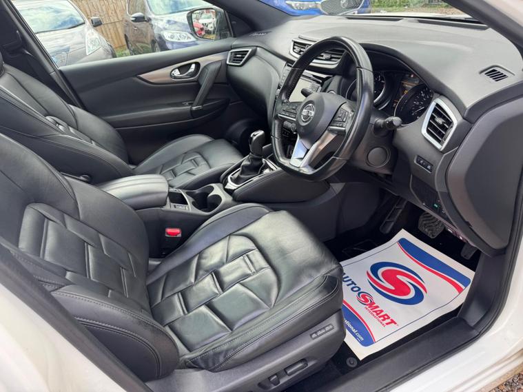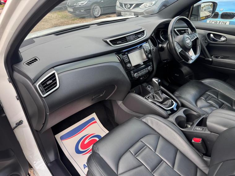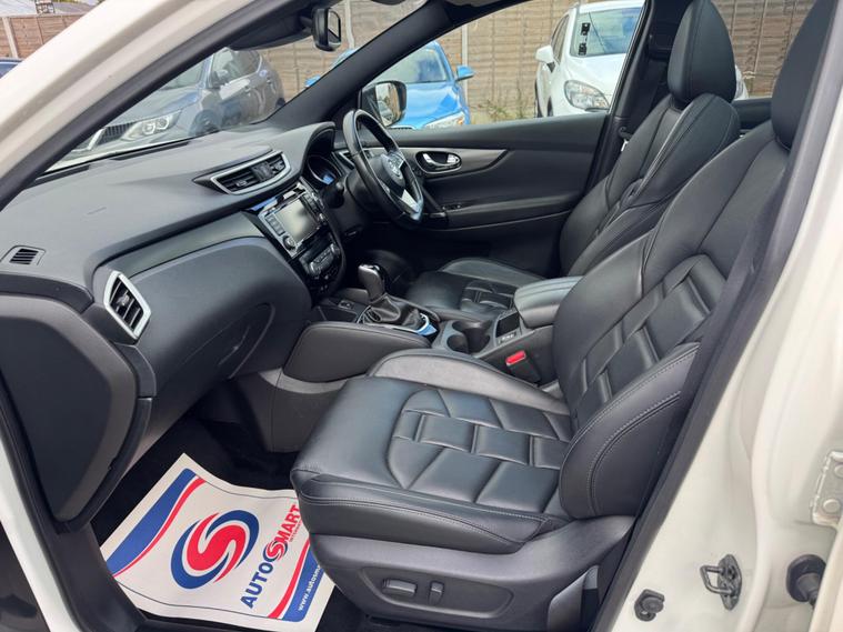 This 2019 Nissan Qashqai DIG-T Tekna+ is a superb example of a well maintained family car. It boasts a 1.3 litre petrol engine and meets Euro 6 emission standards, contributing to its low CO2 emissions. The Tekna+ trim level ensures a premium experience, enhanced by the inclusion of the ProPILOT system with adaptive cruise control, designed to make journeys more relaxed. Furthermore, the Glass Roof Pack, featuring a fixed panoramic sunroof, floods the cabin with light, while the Intelligent Around View Monitor, complete with a 360 degree camera and parking assistance, offers unparalleled visibility when manoeuvring. Connectivity is also a strong point, with Bluetooth and audio streaming readily available.The Smart Vision Pack, incorporating front and rear parking sensors, further aids in effortless parking. This Qashqai is equipped with features that set it apart from other vehicles in its class, offering a more sophisticated and convenient driving experience. Its efficient 1.3L petrol engine and Euro 6 compliance highlight its commitment to lower environmental impact through reduced CO2 emissions, making it a sensible choice for the modern driver..