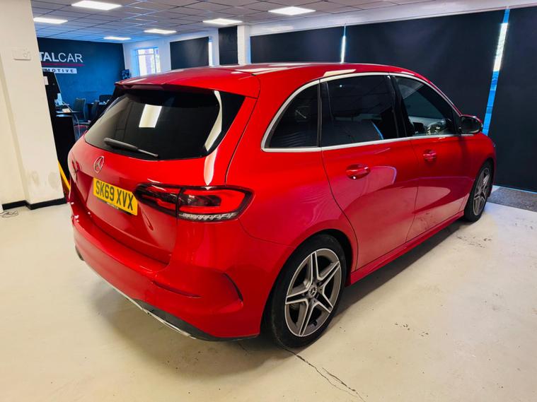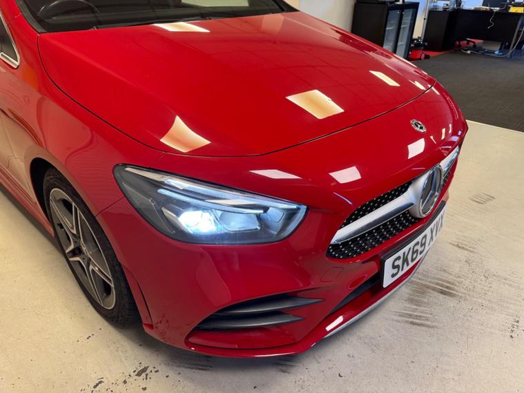 This 2019 Mercedes Benz B Class B180 AMG Line is a superb example, having had only one owner since new. This stylish hatchback boasts a 1.3 litre petrol engine, meeting Euro 6 emissions standards. It comes equipped with the desirable AMG Line trim, enhancing its sporty appeal. Practicality is also a strong point, with generous boot space for all your needs.Experience effortless driving with features like Headlamp Assist, which automatically activates the headlights in dark conditions, and LED High Performance Headlamps with integrated daytime running lights. Stay comfortable with THERMOTRONIC Luxury Automatic Climate Control, offering two zone climate control. Maneuvering is made easier with a reversing camera displaying dynamic guidelines on the media display. This B Class also offers dual Bluetooth connectivity with two USB Type C ports. With a fuel economy of 45 mpg and low CO2 emissions, it represents an efficient choice. Its acceleration from 0 to 62 mph in 9.4 seconds demonstrates a capable performance, indicating it performs better than many similar vehicles..