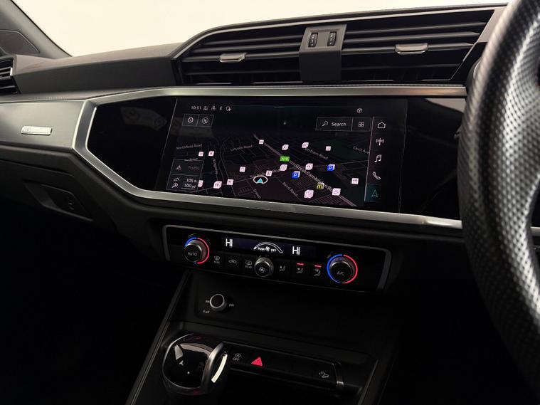 Our Audi Q3 is finished in Black. With a great specification, our Q3 includes features such as 19 Inch Alloy Wheels, Electric and Heated Mirrors, Electric Folding Mirrors, Front and Rear Electric Windows, Privacy Glass, Roof Rails, Air Conditioning, Apple Carplay, Bluetooth, DAB Radio, Multi-Function Steering Wheel, Parking Sensors, Satellite Navigation, Speed Limiter, USB, Black Half Leather Trim, Central Armrest, Cup Holders, Electric Tailgate, Folding Rear Seats, Rear Central Armrest, ISOFIX, LED Daytime Running Lights, LED Headlights, LED Tailights, Remote Central Locking. All Car Planet stock is carefully picked, so you can buy from us with confidence. Each vehicle undergoes a thorough 150-point check at our preparation hub by our qualified specialists. Every car purchased comes with a free 12-month AA breakdown cover plan option to extend to 60 months warranty. You can reserve any of our cars online, with a refundable £99 reservation at dealer's website We also offer the option to purchase online and you can have your new car delivered to your door step from £199 in as little as 48 hours. Alternatively, come and visit our Barnet site where our friendly Car Gurus will assist you every step of the way. If you prefer a virtual appointment, we offer same-day video-viewings. We offer a range of flexible finance options from our panel of lenders. Part-exchanges are available upon request. Simply select, secure and drive..