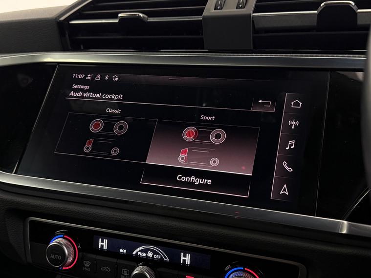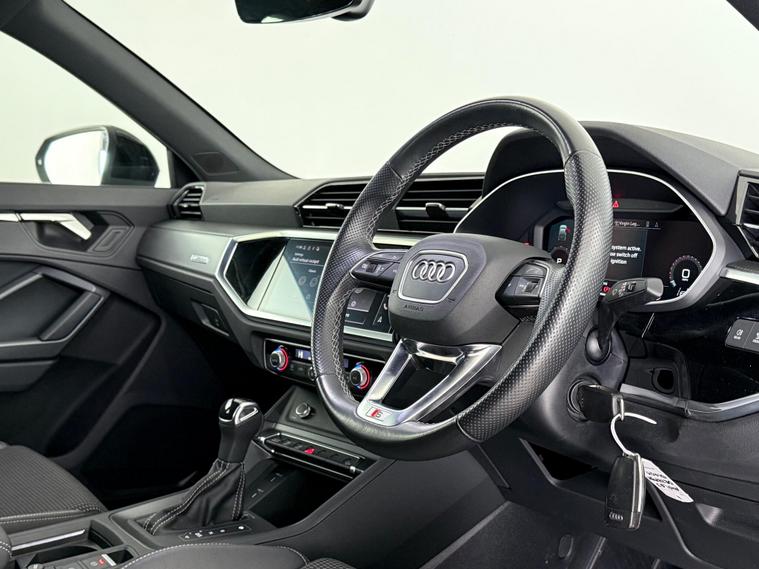 Our Audi Q3 is finished in Black. With a great specification, our Q3 includes features such as 19 Inch Alloy Wheels, Electric and Heated Mirrors, Electric Folding Mirrors, Front and Rear Electric Windows, Air Conditioning, Apple Carplay, Bluetooth, DAB Radio, Multi-Function Steering Wheel, Parking Sensors, Satellite Navigation, USB, Black Half Leather Trim, Central Armrest, Cup Holders, Electric Tailgate, Folding Rear Seats, Rear Central Armrest, ISOFIX, LED Daytime Running Lights, LED Tailights, Remote Central Locking. All Car Planet stock is carefully picked, so you can buy from us with confidence. Each vehicle undergoes a thorough 150-point check at our preparation hub by our qualified specialists. Every car purchased comes with a free 12-month AA breakdown cover plan option to extend to 60 months warranty. You can reserve any of our cars online, with a refundable £99 reservation at dealer's website We also offer the option to purchase online and you can have your new car delivered to your door step from £199 in as little as 48 hours. Alternatively, come and visit our Barnet site where our friendly Car Gurus will assist you every step of the way. If you prefer a virtual appointment, we offer same-day video-viewings. We offer a range of flexible finance options from our panel of lenders. Part-exchanges are available upon request. Simply select, secure and drive..