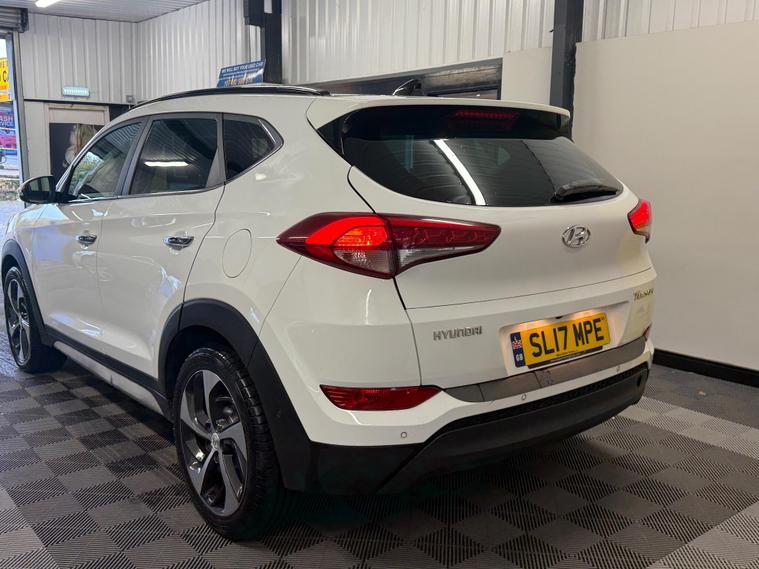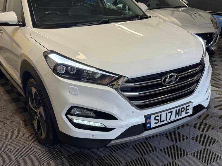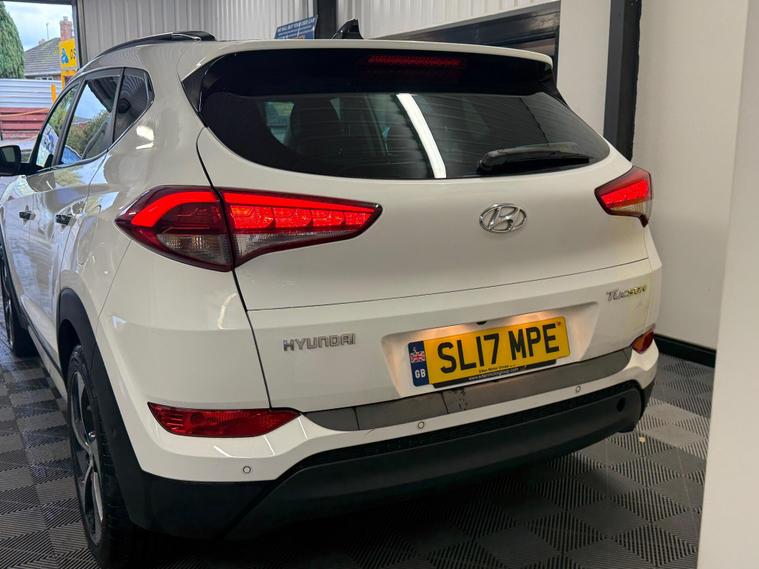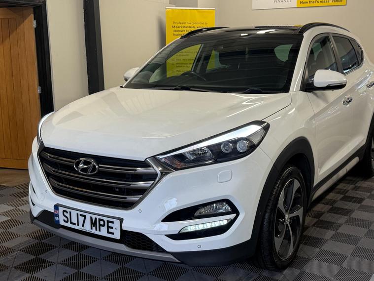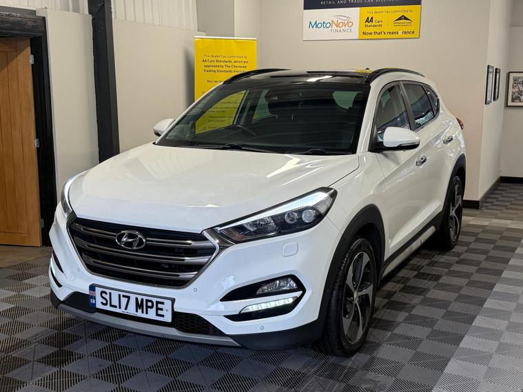 2017 Hyundai Tucson 1.7 CRDi Blue Drive Premium SE DCT Euro 6 (s/s) 5dr finished in excellent condition throughout. The car has covered 94, 670 miles and has had three former keepers. It comes complete with the full V5 and a comprehensive service history consisting of eight recorded services, including one we will carry out as part of our preparation process, along with a fresh MOT.This is the sought-after Premium SE specification, which includes a panoramic glass roof, full leather interior, heated and ventilated front seats, satellite navigation with touchscreen display, reversing camera, parking sensors, keyless entry and start, electric tailgate, cruise control, dual-zone climate control, DAB radio, Bluetooth connectivity, USB inputs, 18-inch alloy wheels, and LED daytime running lights. Please see photos for condition.A three-month comprehensive warranty is included with the option to extend for up to two years. Part exchange is welcome for any value, and our Buying Department can provide prompt valuations. Nationwide delivery is available at a cost upon request, and you can reserve this vehicle today with a £250 fully refundable deposit.We have over 150 vehicles in stock across our two sites to choose from. Established in 2021, we pride ourselves on our excellent reviews and customer service. All our retail vehicles are fully health-checked and prepared to the highest standard. As an AA Approved Dealer with Trading Standards endorsement, you can trust us to deliver quality and reliability. Every car comes with 12 months of free AA roadside breakdown and recovery, regardless of age, value, or mileage.We are regulated and authorised by the Financial Conduct Authority under FRN: 1014981..
