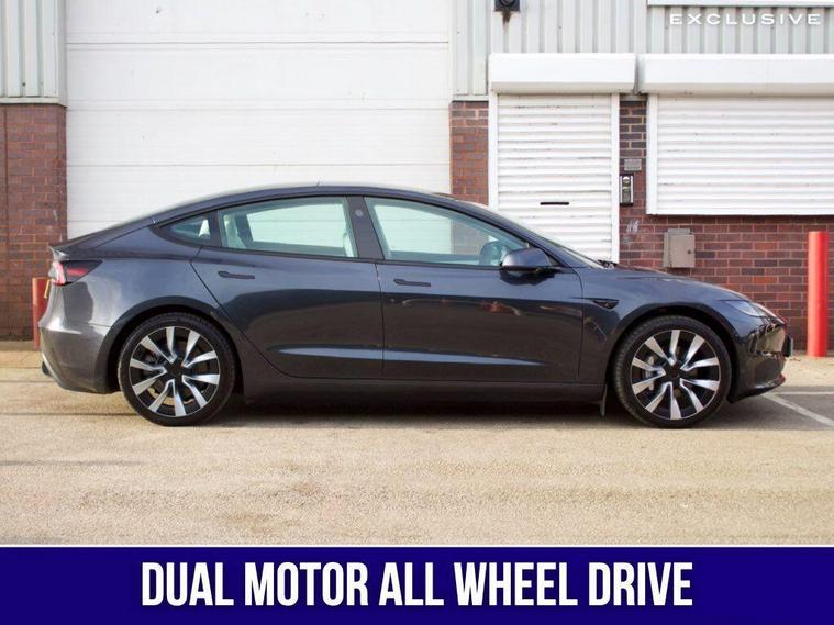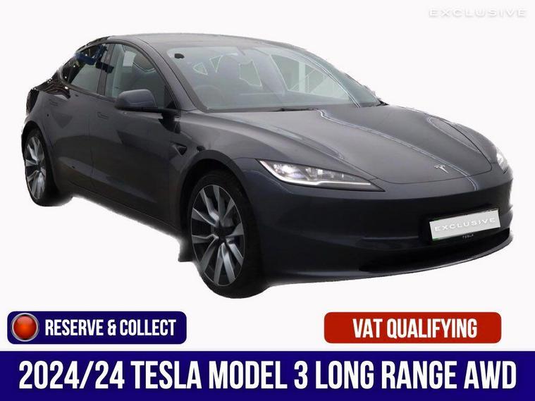 VAT QUALIFYING - £28.458.33 + £5, 691.67 VAT We are delighted to present this 1 owner, Tesla Model 3 Long Range AWD finished in stealth grey and complemented with the 19'' Nova alloys (£1, 500 option) TESLA WARRANTY UNTIL 06/2028 AND BATTERY WARRANTY UNTIL 06/2032 WHICH CAN BE FURTHER EXTENDED---|--If you’re looking for an affordable electric family car, the Tesla Model 3 Highland should be right at the top of your shopping list. It was given a major update in 2024 which gave it a sleeker, more aggressive exterior design and a subtly changed interior – but perhaps more important is that updates make it more quiet and refined inside as well as more comfortable over bumps. ---|--So let us tell you about our day out with the Tesla. We are simply in awe of this fantastic wonder car, achieving 60 mph in 4.2 seconds and a top speed of 125 mph and up to 390 miles estimated range ...calling this a car would be a great injustice to the motor industry. We are so excited when writing this ... and you really do need to visit and let us drive you, or if you prefer let the autopilot, one of our favourite options, drive you to experience this fantastic technological marvel. Really you must ... it really is that good!---|---We think that owning this car is akin to owning an Apple product, simple yet brilliant in both form and function and seldom out of date thanks to its over the air updates. Yep. Instead of having to go to a dealer or service centre to get your car updated, Tesla pushes updates to its cars over the net like it’s a massive, wheeled smartphone. These updates add new features, improve existing ones and fix bugs. Theory is however old your Model 3, it will always have all the latest features, provided you’ve let it update ). This is clever and we like it very much indeed. It’s rapid, quiet, refined, spacious, fantastic grip and road manners. ***Other features and upgrades can be added from Tesla such as***:Full self drivingEnhanced autopilot Tow bar.