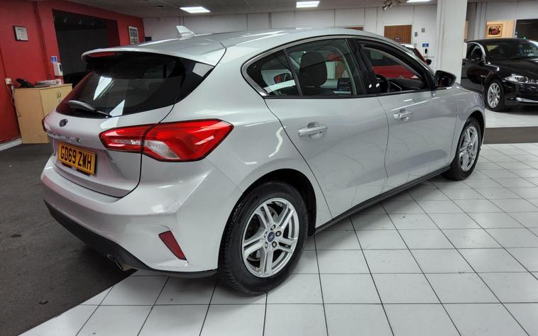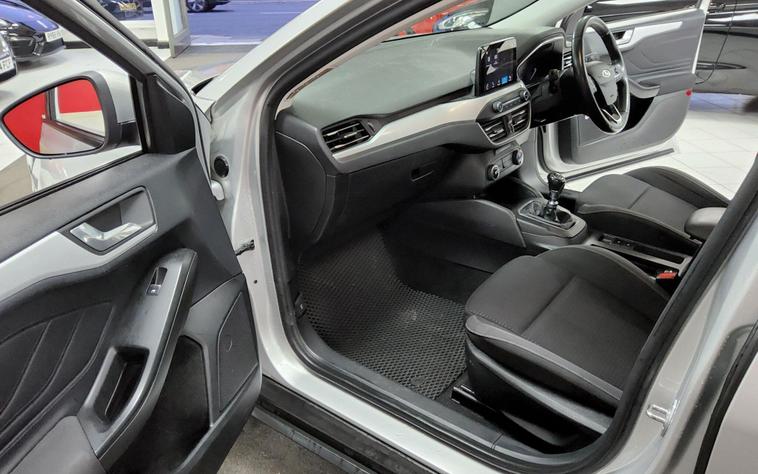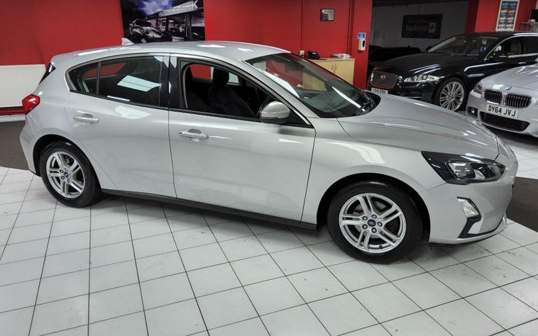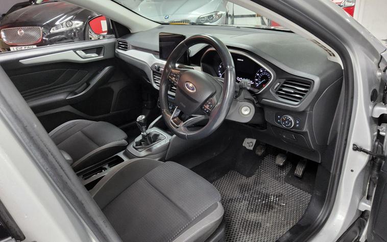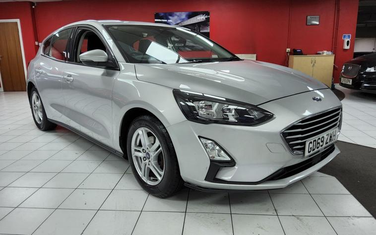 This 2020 Ford Focus T Zetec is finished in metallic silver with charcoal cloth upholstery and is presented with a clear vehicle history check, offering peace of mind for its next owner. This is a well equipped model, inside, you'll find the Ford SYNC system complete with an 8 inch TFT touchscreen, offering seamless integration with Android Auto and Apple CarPlay, plus onboard DAB radio, Satnav, and Bluetooth. For your comfort, it includes air conditioning and automatic on-off headlights for convenience in varying light conditions and Cruise control to make those longer journeys less fatiguing. The Ford Focus T Zetec is designed to be economical and practical. Its low insurance group 8 means lower running costs, and the generous boot space provides ample room for luggage or shopping. The vehicle also benefits from low CO2 emissions, making it a more environmentally conscious choice.This fabulous car will leave here serviced and fully valeted and with a fresh 12 months MOT(with no advisories). We can arrange finance and we welcome a part exchange. We can email a walk around video to you and we can also arrange for UK delivery to your door, please call for more information. Viewing in our heated showroom and test drives are available 7 days a week - please call to arrange, prior to travelling. Extended warranties are available for 1, 2 or 3 years please call for prices..