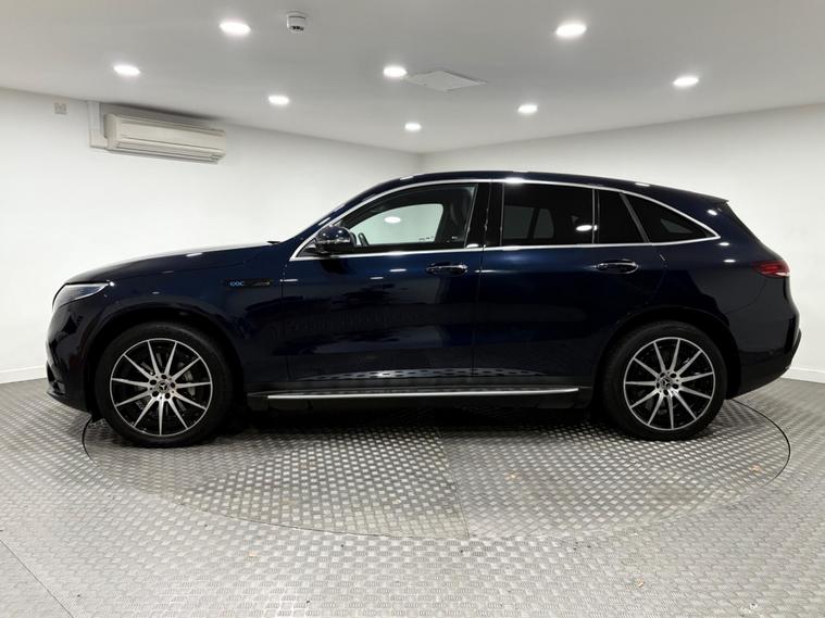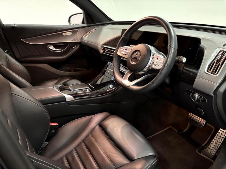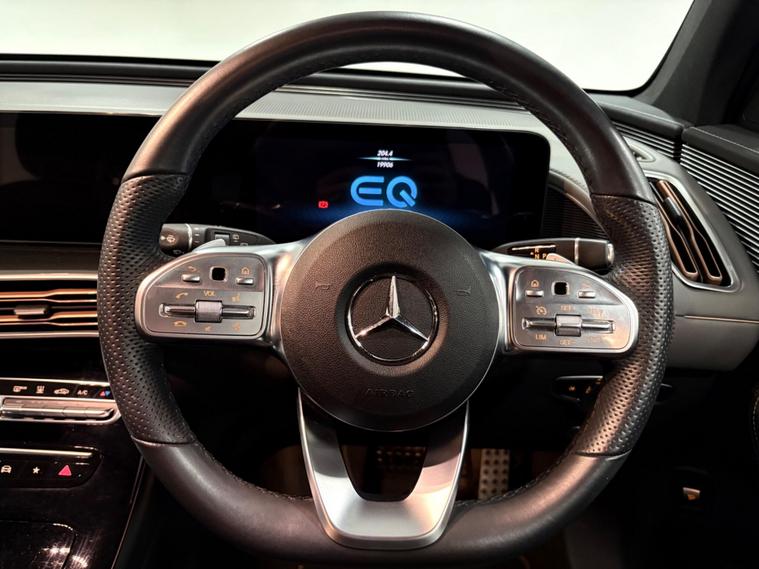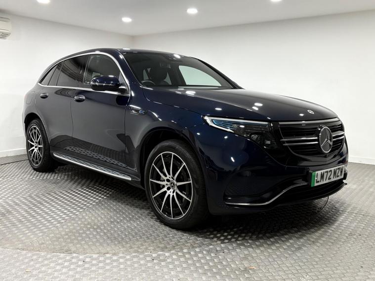 This Mercedes-Benz EQC presents an exceptional ownership proposition, having been owner by only one owner and boasting a remarkably low mileage of 19, 906 miles for its age. Finished in metallic blue with black leather interior, supplied with 2 keys and will have a service and an MOT as part of our internal preparation. As a fully electric vehicle with Four Wheel Drive, it offers a sophisticated and powerful driving experience. Charging is convenient, as rapid public charging can replenish the battery from empty to 80% in as little as 45 minutes. Notable features include the immersive Mercedes-Benz Sound System, heated front seats for enhanced comfort, and advanced MULTIBEAM LED Headlights for superior visibility. Safety is also a priority, with Blind Spot Assist integrated for added peace of mind, and the KEYLESS-GO Comfort Package allowing for effortless entry and ignition. Other features include 20 inch alloy wheels, a reversing camera and much more.The performance of this EQC is truly impressive, highlighted by its rapid acceleration from 0-62mph in just 5.1 seconds, demonstrating its electric power. This capability sets it apart from many other vehicles in its class. Furthermore, the generous boot space ensures practicality for everyday use and longer journeys. The AMG Line trim signifies a sportier aesthetic and enhanced specification, making this Mercedes-Benz EQC 400 a compelling choice for those seeking a blend of luxury, performance, and electric innovation..