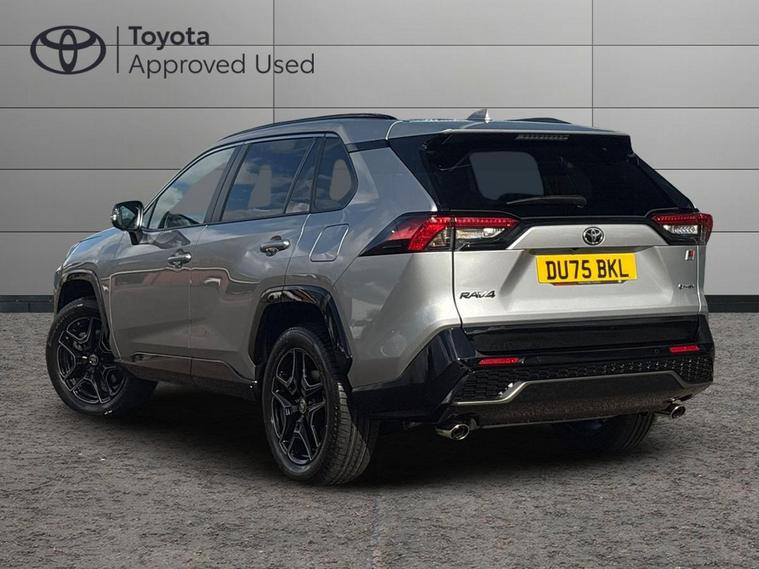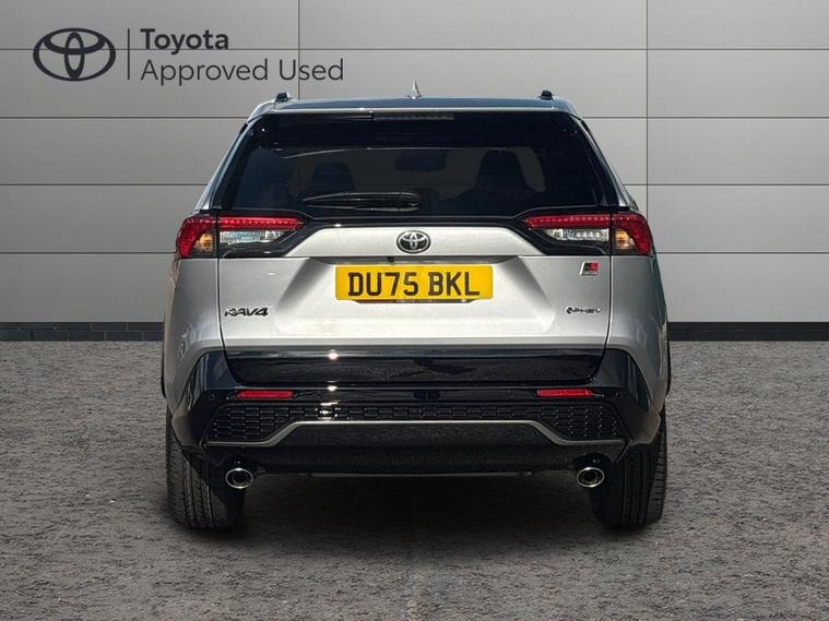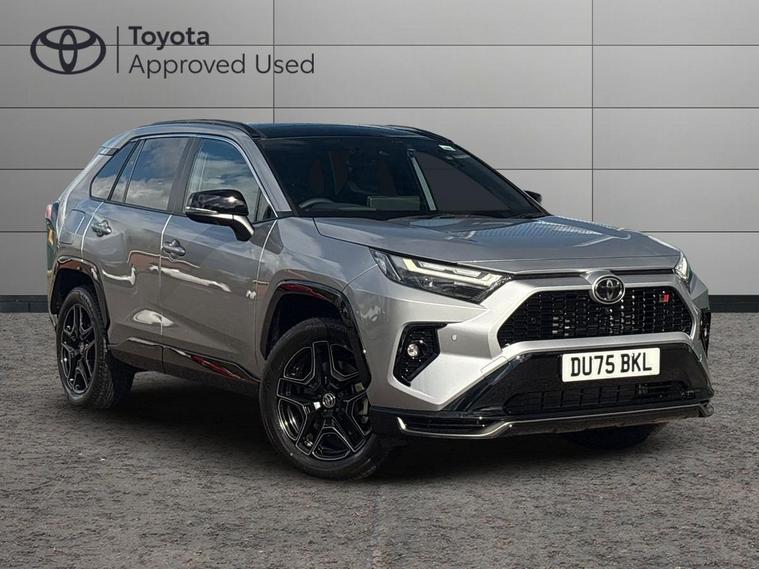This 2025 Toyota RAV4 VVT GR SPORT is presented in exceptional condition, having had only one owner and benefiting from a full dealership service history, with its last service completed at just 5 miles on 3rd September 2025. As a Toyota manufacturer approved vehicle, it comes with the reassurance of a 36 month warranty. This striking GR SPORT trim model features a powerful 2.5L Petrol Plug-in Hybrid engine, delivering impressive performance with four wheel drive capability and meeting Euro 6 emission standards.Experience the thrill of rapid acceleration, reaching 0-62mph in a swift 6.0 seconds, a performance indicator that sets this RAV4 apart. The generous boot space offers practicality for all your needs, while the Skyview Panoramic Roof, complete with an opening sunroof, floods the cabin with light. Further enhancing your driving experience are the convenient driver's seat memory function, a clear Head Up Display, advanced LED Dual Beam Projector Headlights for superior visibility, and a heated steering wheel for added comfort on colder journeys..