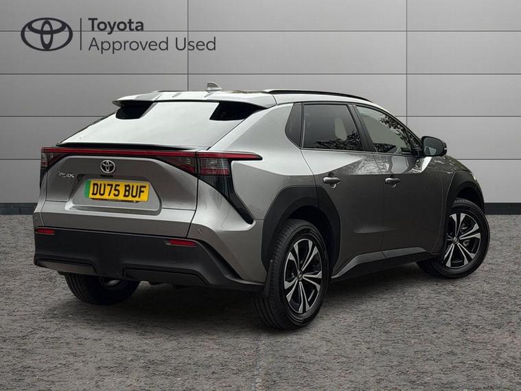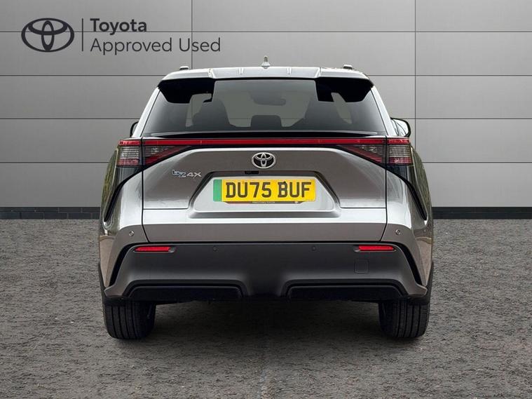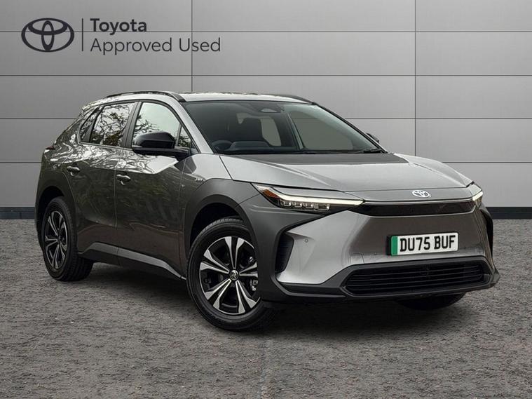 This 2025 Toyota bZ4X Motion is a truly exceptional example, having had only one owner and boasting a full dealership service history, with its last service completed on 22nd September 2025 at just 3 miles. This electric vehicle offers a substantial battery capacity of 71 kWh, providing a maximum range of 313 miles when new. For your peace of mind, it comes with a 36 month warranty and its MOT is valid until September 2028. As a Toyota manufacturer approved vehicle, you can be confident in its quality and condition.The Motion trim level is well equipped with notable features designed to enhance your driving experience. These include front parking sensors with automatic object braking and parking assistance, a 12.3 inch HD Toyota Smart Connect multimedia system with wireless Apple CarPlay and Android Auto, and a reversing camera for easier manoeuvring. Safety is further bolstered by the Blind Spot Monitor system, and convenience is assured with adaptive cruise control accessible from the steering wheel. Charging is efficient, with a full charge at home taking approximately 9 hours and 10 minutes using a 7kW charger, and a rapid charge from empty to 80% achievable in just 34 minutes at a public charging station. These features collectively demonstrate how this bZ4X Motion stands out from other vehicles in its class..