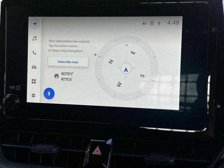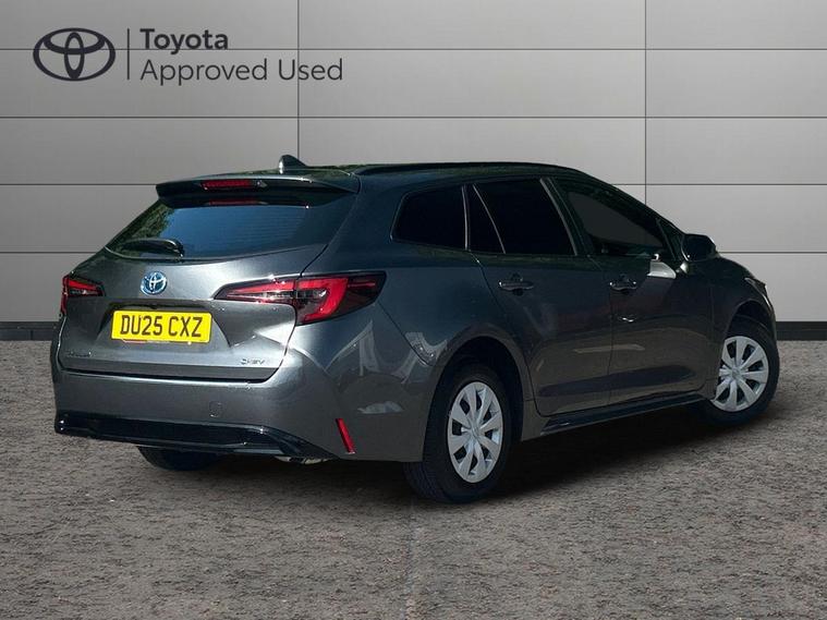 This 2025 Toyota Corolla 1.8 VVT-h CVT Euro 6 (s/s) 5dr is presented in exceptional condition with an incredibly low mileage of just 1713 miles, having only completed its first service at 3 miles on 2025-03-03 by a main dealership, and benefits from a comprehensive 30 month warranty. This one owner vehicle boasts a 1.8L Petrol Hybrid engine, delivering a smooth and efficient driving experience. It comes equipped with Smartphone Integration, featuring both Apple CarPlay and Android Auto, allowing seamless connection to your digital life. For added convenience and safety, a reversing camera with parking assistance is included, alongside an 8in multimedia display offering DAB radio and Bluetooth connectivity. The advanced Toyota Safety Sense 3 suite incorporates adaptive cruise control, enhancing your journeys.The highlights of this Corolla demonstrate its superior offering. With an impressive 138 bhp, it provides ample power for all driving situations, while the substantial cargo volume of 1606 litres ensures practicality for any adventure or shopping trip. These features, combined with its hybrid technology and comprehensive safety systems, position this Toyota Corolla as an outstanding choice for those seeking reliability, efficiency, and modern technology in a stylish five door package..