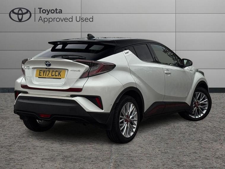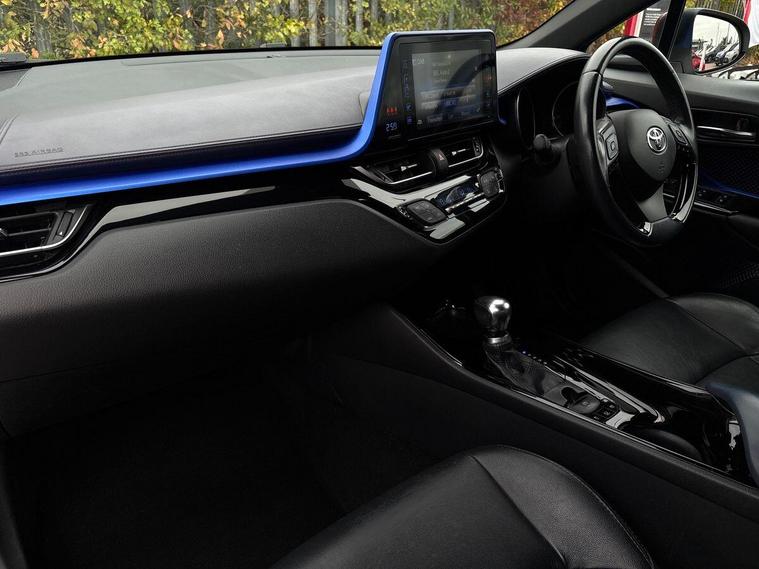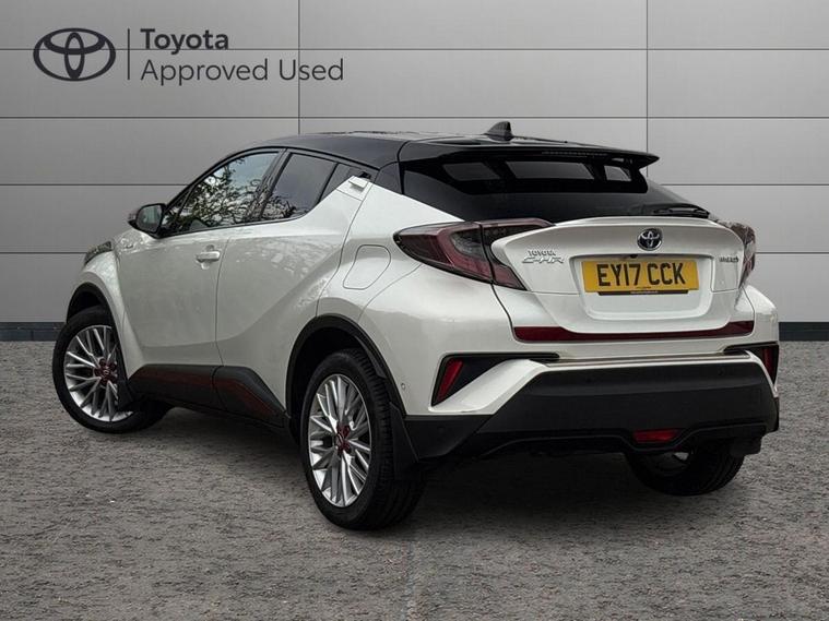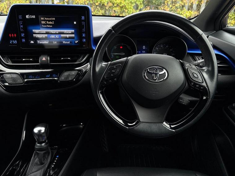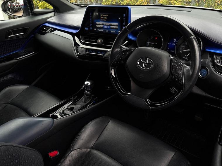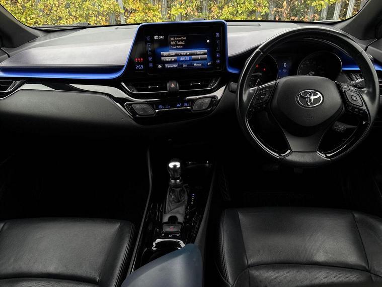 This 2017 Toyota C-HR VVT-h Dynamic is a Toyota manufacturer approved vehicle, boasting a comprehensive 12 months warranty for your peace of mind. It has a full service history, with its last service completed on 12 September 2025 at 66, 441 miles, and its MOT is valid until September 2026, ensuring its roadworthiness. This Euro 6 compliant model features a smooth 1.8L petrol hybrid engine and comes equipped with luxurious black leather upholstery, automatic headlights, heated front seats, and dual zone automatic air conditioning for ultimate comfort. Enjoy seamless connectivity with Bluetooth.The Toyota C-HR Dynamic stands out with its exceptional fuel economy, achieving an impressive 72 mpg, which indicates it is more economical than many other vehicles in its class. Furthermore, its low CO2 emissions and low insurance group highlight its cost effectiveness for everyday driving. This well maintained hybrid offers a compelling blend of style, efficiency, and comfort..