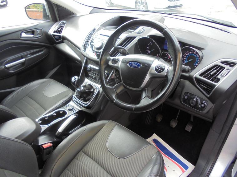 FORD KUGA 2.0TDCI TITANIUM AWD EURO 6.METALLIC GREY WITH CONTRASTING CHARCOAL GREY HALF LEATHER INTERIOR.LOOKS AND DRIVES SUPERB WITH FANTASTIC SERVICE HISTORY AND GREATY SPEC.BLUETOOTH CONNECTIVITY, FRONT AND REAR PARKING SENSORS, CRUISE CONTROL, USB+AUX, 2 KEYS AND 17 INCH ALLOYS.MOT UNTIL OCTOBER 2026 AND FRESH SERVICE FULLY VALETED AND READY TO DRIVE AWAY.12 MONTHS FREE AA BREAKDOWN COVER AND 15 MONTHS NATIONWIDE WARRANTY INCLUDED IN PRICE FINANCE AVAILABLE P/X WELCOME..