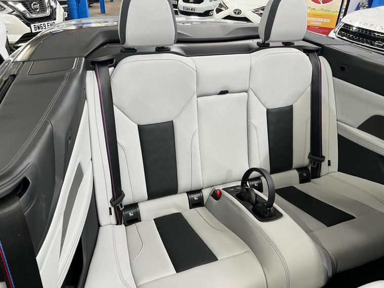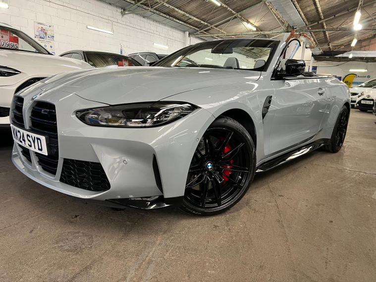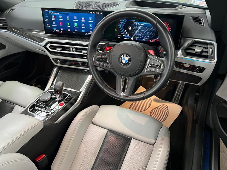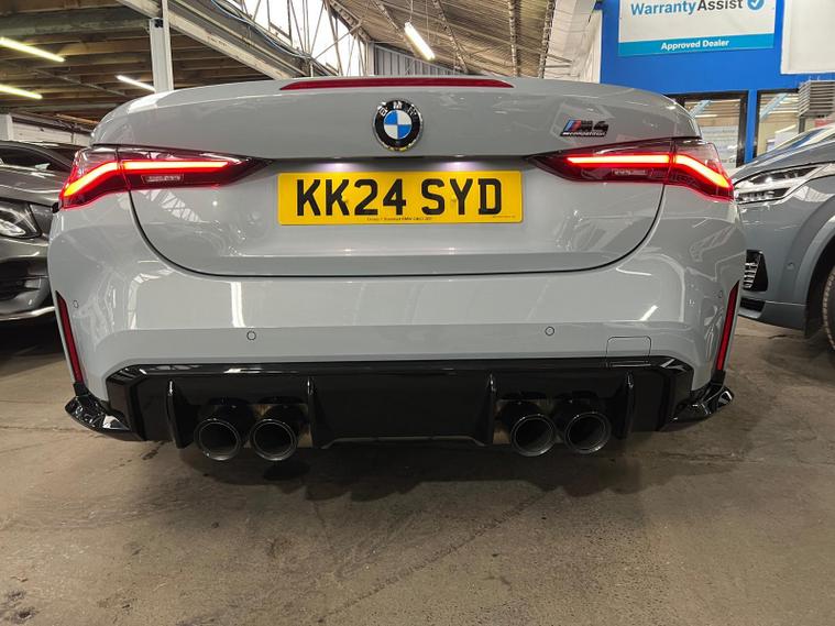 This 2024 BMW M4 BiTurbo Competition is a truly exceptional example, boasting a clear vehicle history and having been owned by just one careful owner. Powered by a potent 3.0 litre petrol engine and featuring a sophisticated four wheel drive system, this Euro 6 compliant model offers exhilarating performance. It comes equipped with striking 19 inch front and 20 inch rear M Double Spoke 825 forged alloy wheels in Orbit Grey Matt with mixed tyres, alongside automatic three zone air conditioning for optimal comfort. Convenience is further enhanced by a wireless charging tray for your phone and electric memory seats, ensuring your preferred driving position is always readily available.The M4 Competition truly stands out from other vehicles in its class. Its impressive acceleration is highlighted by a rapid 0 to 62mph time of just 3.7 seconds, demonstrating its dynamic capabilities. Furthermore, this model benefits from a low insurance group, making it an attractive proposition. Practicality is not overlooked, with a generous boot space offering ample room for luggage or shopping. The advanced Parking Assistant, complete with front and rear cameras and sensors, provides confidence and ease when manoeuvring in tighter spaces..