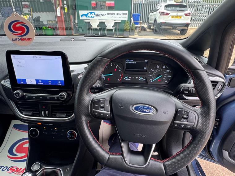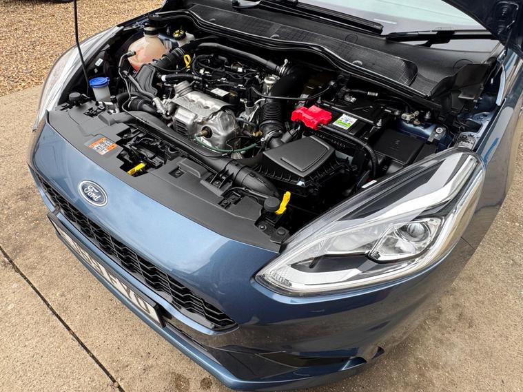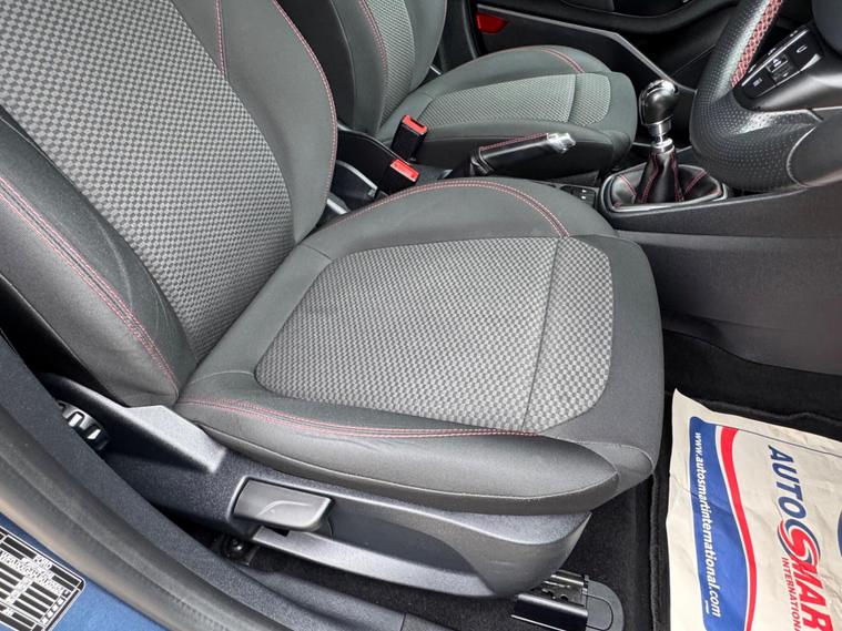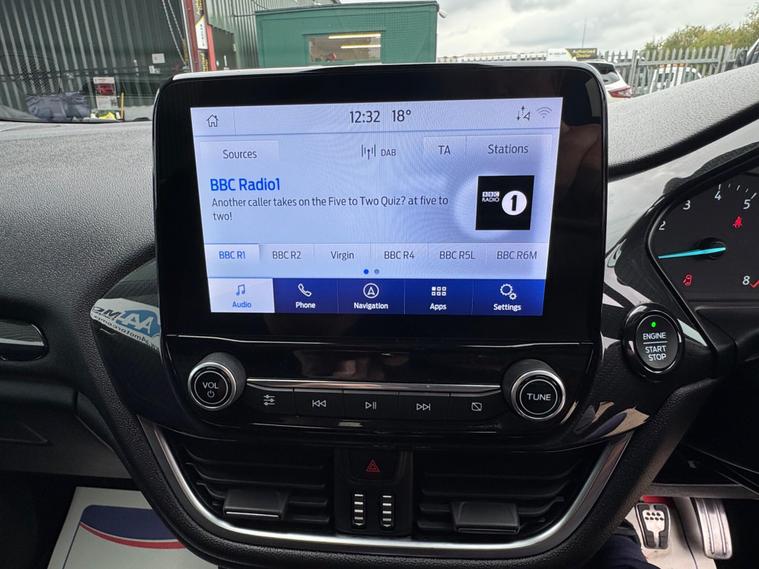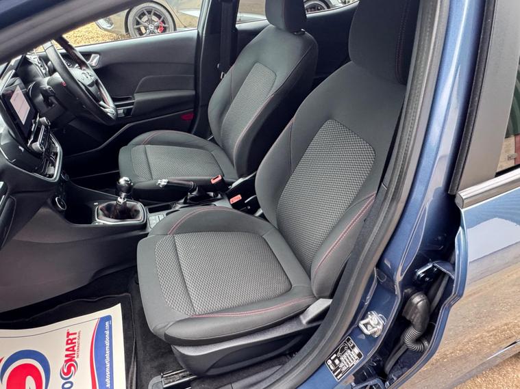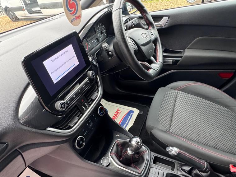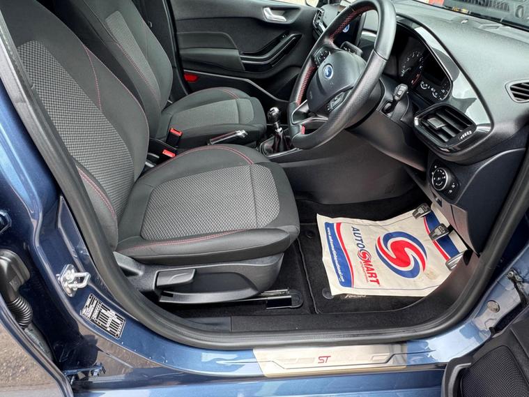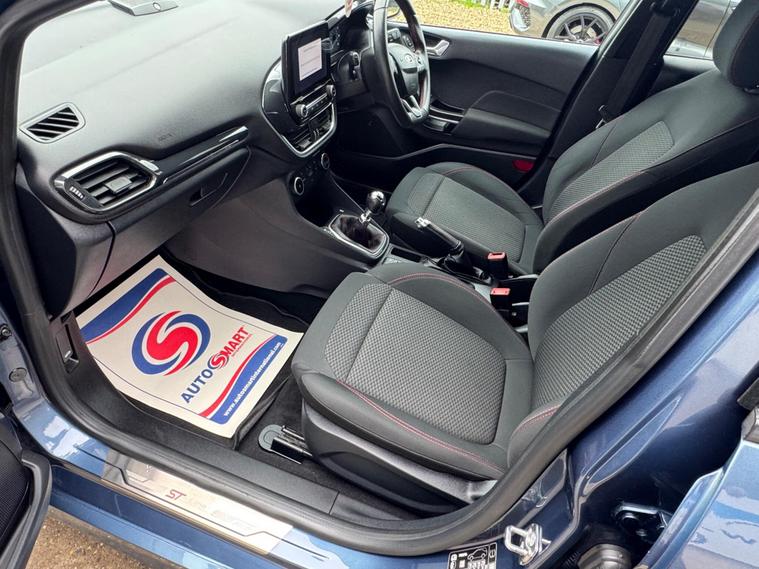 Boasting exceptionally low mileage for its age, this 2019 Ford Fiesta T ST Line presents a superb ownership opportunity. This Euro 6 compliant model is powered by an efficient 1.0L petrol engine and comes with the reassurance of an 18 month warranty. Its provenance is further strengthened by a full service history, a clear vehicle history check, and a 12 month MOT provided on purchase. The ST Line trim ensures a sporty aesthetic, complemented by notable features such as Ford SYNC with a touchscreen, DAB radio, and seamless integration for Apple CarPlay and Android Auto. Convenience is enhanced with manual air conditioning and automatic on-off headlights, part of the NCAP Pack.This Ford Fiesta is designed to impress, offering a responsive drive with a 0-62mph acceleration time of just 10.6 seconds. Its low CO2 emissions highlight its efficiency, making it a more economical choice compared to many similar vehicles. The last service was completed on 2025-10-18 at 42655 miles, and with the current mileage standing at a mere 42685 miles, this Fiesta is ready for many more miles of enjoyable driving..