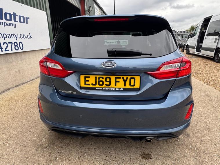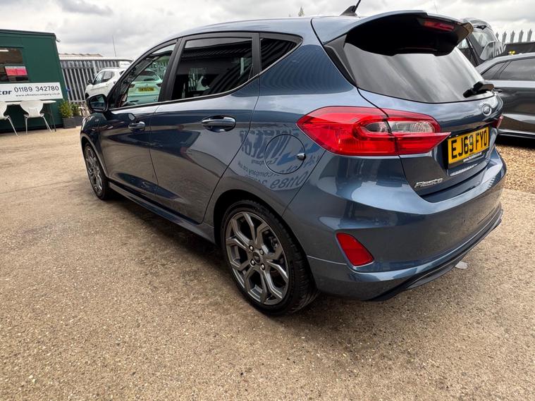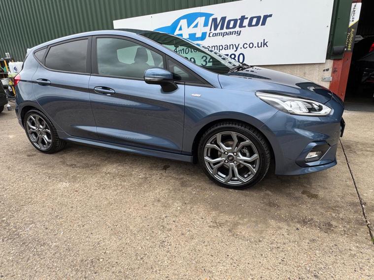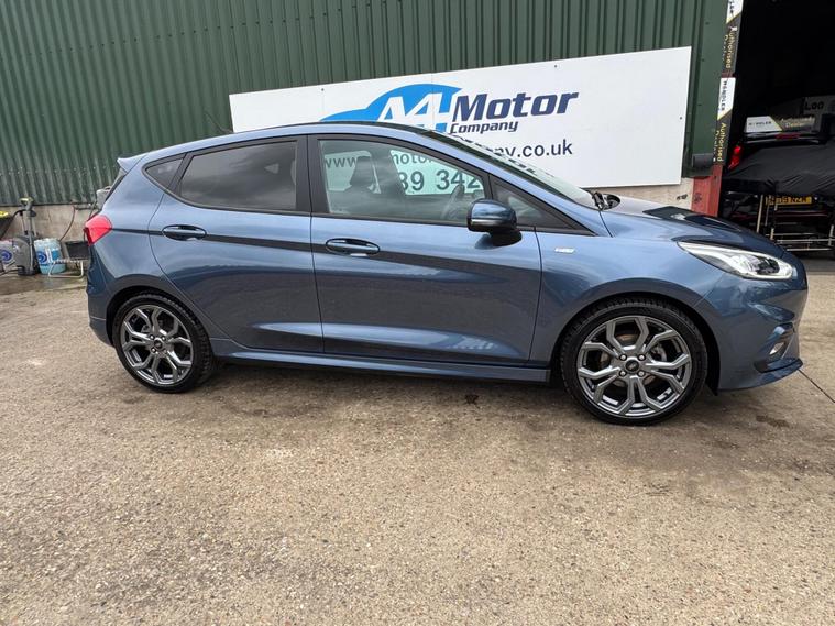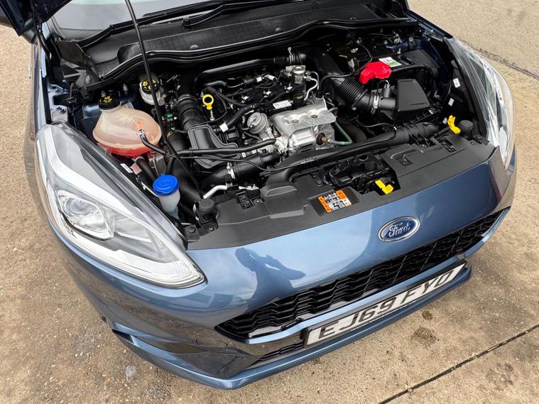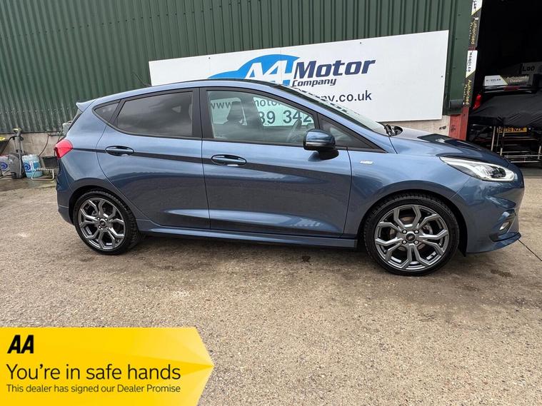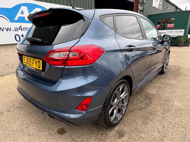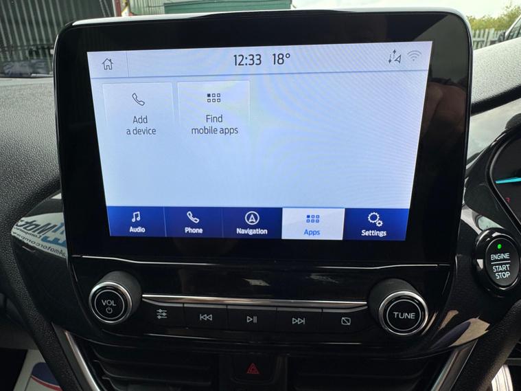 Boasting exceptionally low mileage for its age, this 2019 Ford Fiesta T ST Line presents a superb ownership opportunity. This Euro 6 compliant model is powered by an efficient 1.0L petrol engine and comes with the reassurance of an 18 month warranty. Its provenance is further strengthened by a full service history, a clear vehicle history check, and a 12 month MOT provided on purchase. The ST Line trim ensures a sporty aesthetic, complemented by notable features such as Ford SYNC with a touchscreen, DAB radio, and seamless integration for Apple CarPlay and Android Auto. Convenience is enhanced with manual air conditioning and automatic on-off headlights, part of the NCAP Pack.This Ford Fiesta is designed to impress, offering a responsive drive with a 0-62mph acceleration time of just 10.6 seconds. Its low CO2 emissions highlight its efficiency, making it a more economical choice compared to many similar vehicles. The last service was completed on 2025-10-18 at 42655 miles, and with the current mileage standing at a mere 42685 miles, this Fiesta is ready for many more miles of enjoyable driving..