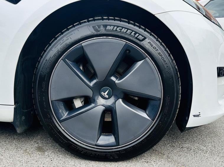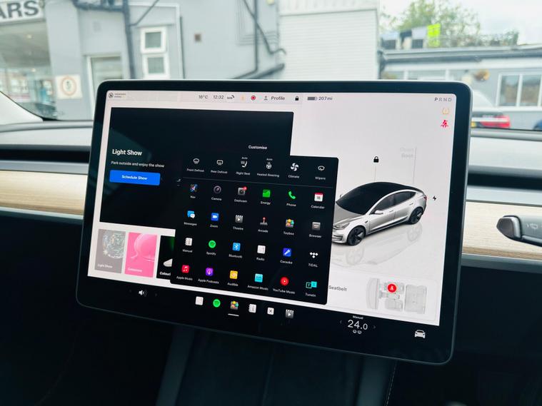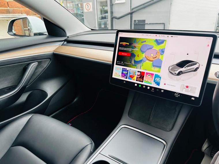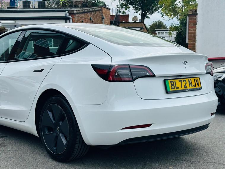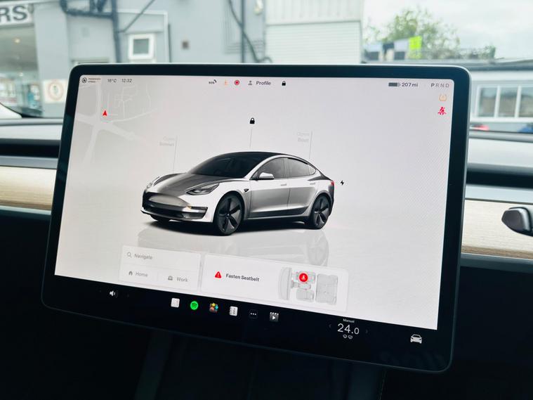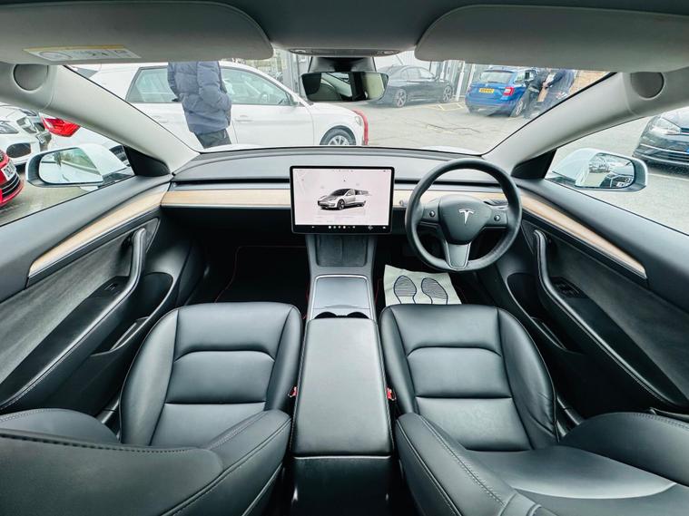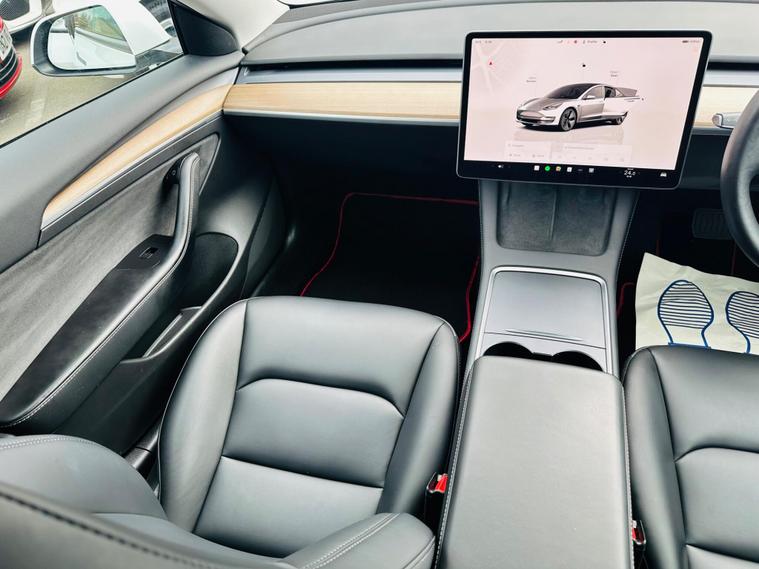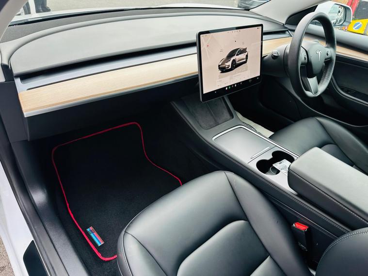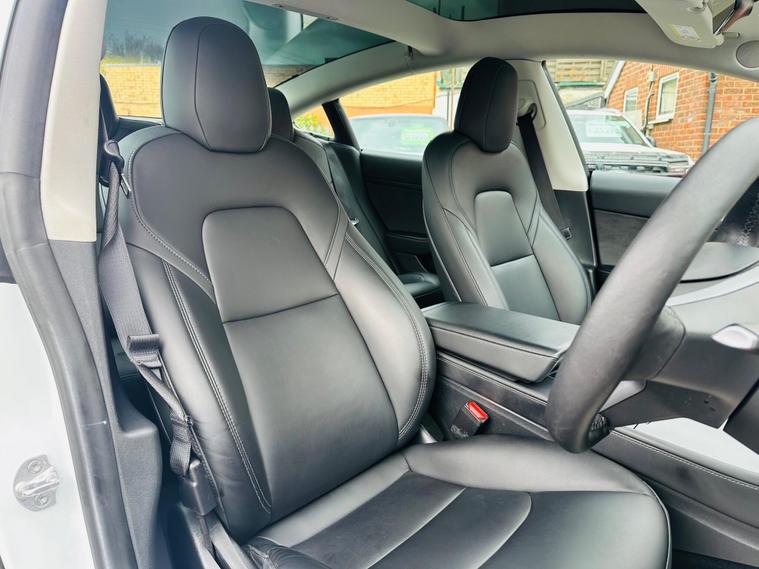 This 2022 Tesla Model 3 presents a superb ownership proposition, having had only one owner since new. As a fully electric vehicle, it boasts a 62 kWh battery offering a maximum range of 317 miles when new. Charging is convenient, with a full charge at home using a 7kW charger taking approximately 8 hours, while rapid charging to 80% from empty on a public charger can be achieved in just 29 minutes.Inside, you'll find a wealth of comfort and convenience features, including 12 way power adjustable front and rear heated seats, ensuring a pleasant journey in any weather. The Model 3 also comes equipped with a park assist camera for easier manoeuvring and a fixed panoramic glass roof that enhances the sense of space. The generous boot space provides ample room for luggage or shopping, making this Tesla a practical choice for everyday use and longer trips..
