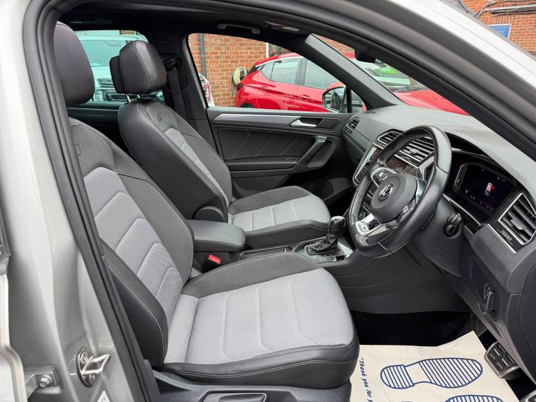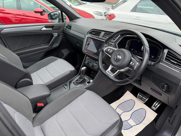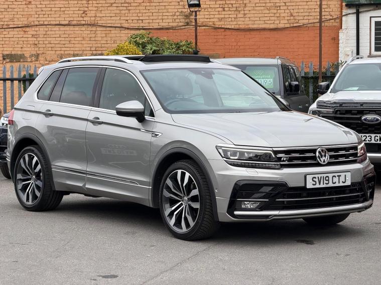 This 2019 Volkswagen Tiguan TSI EVO R-Line boasts a full dealership service history, with its last service completed on 23 January 2025 at 51, 409 miles, and benefits from an MOT valid until July 2026, offering peace of mind for the next owner. This Euro 6 compliant 1.5 litre petrol model, presented in the R-Line trim, comes with a 3 month warranty for added assurance. Key features include keyless entry and start, a full electric tailgate operation, and advanced parking assistance with front and rear sensors, a rear view camera, and a 360 degree area view system. Inside, you'll find the Discover Navigation Pro touch screen infotainment system with integrated voice activation, gesture control, and Car Net App Connect, complemented by a panoramic opening sunroof.The Tiguan R-Line offers several advantages over similar vehicles. Its low CO2 emissions and 0-62mph acceleration in just 9.2 seconds demonstrate an efficient yet responsive performance. The large boot space provides exceptional practicality for everyday use and longer journeys, while its low insurance group rating makes it an economical choice to own and run..