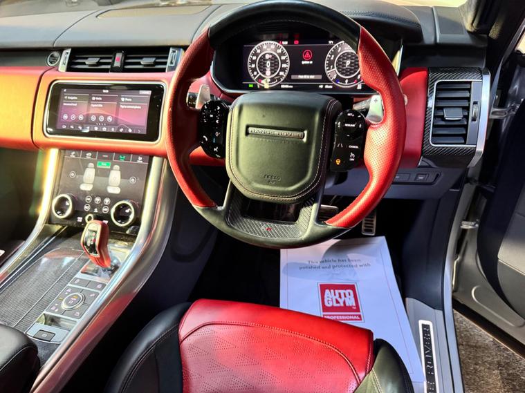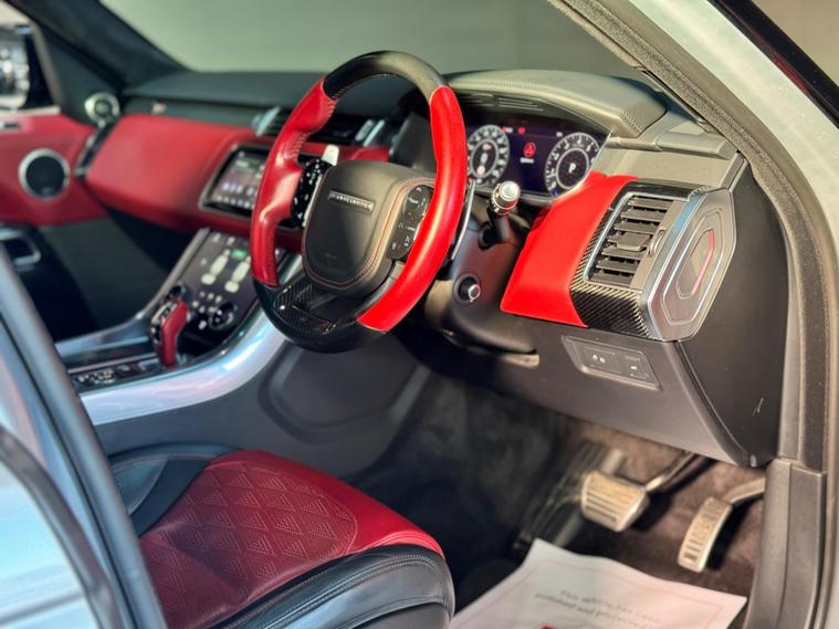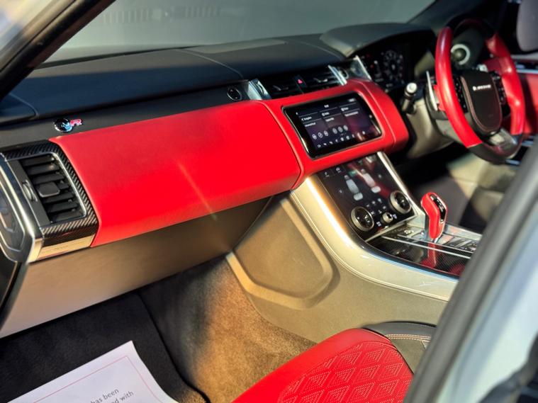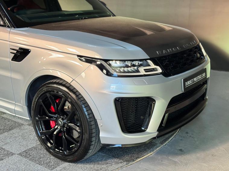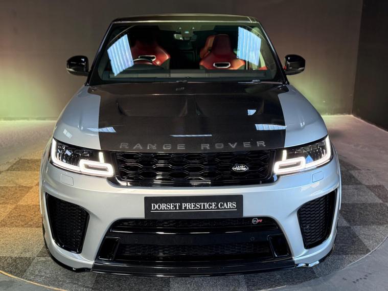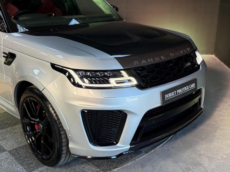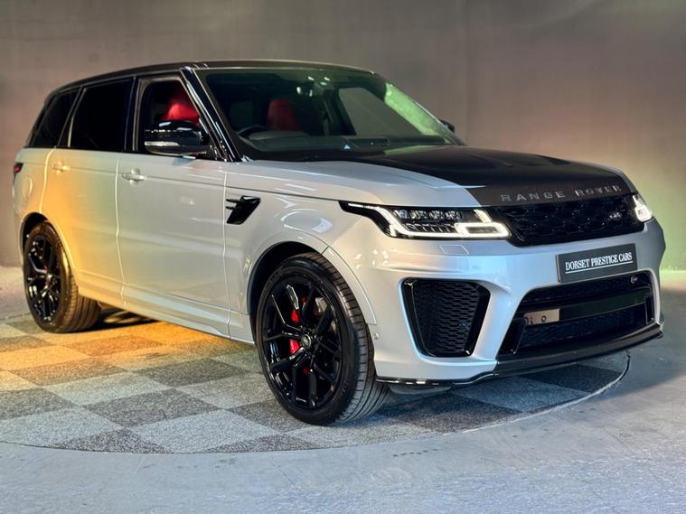 Dorset Prestige Cars are proud to present you this stunning 2019 (69) Range Rover Sport SVR finished in Silver with two tone black and red leather, exposed carbon fibre bonnet, privacy glass, black pack, 22 inch black gloss alloy wheels, front and rear parking sensors, reverse camera, quadruple exhaust system, adaptive headlights, panoramic glass roof with electric blind, full carbon fibre interior pack, carbon fibre SVR steering wheel heated, Meridian audio, extended storage pack, adaptive cruise control, lane assist, heated and cooled front seats rear climate control, satellite navigation, Bluetooth media stream phone preparation, Apple CarPlay, android ready, Isofix Seats!!This vehicle comes with two remote keys and original book packed with manuals. Locking wheels but present. Service history = Land Rover 2019, Land Rover 2020, Land Rover 2021, Land Rover 2022, specialist 2023 and just been serviced by ourselves . Nationwide Delivery Trailered or Driven you Choose, 6 Months Warranty+ Extended warranties available 12 Months AA Breakdown....This vehicle comes with 6 months Warranty for full peace of mind (up to 36 month extension available), 3 or 5 year ceramic coating available, train station collection service, nationwide delivery available on all vehicles. Part Exchange welcome. Open Monday to Saturday ***Viewing By Appointment Only*** All Major Credit and Debit Cards Accepted. Please visit our website for more information on our services and to view our other vehicles currently in stock. Secure this vehicle today for £500 deposit T&C’s Apply! All our vehicles are HPI clear and have been through our workshop for a full health check for peace of mind. See our 5***** reviews , Buy with confidence through us. Find us on Facebook Instagram and YouTube! View our full range of cars on our website and Autotrader profile..