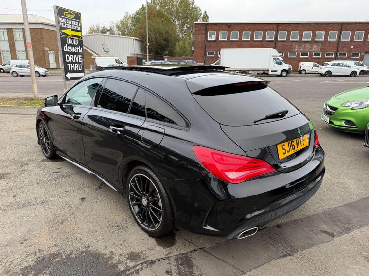 For sale is this sleek and stylish 2016 Mercedes-Benz CLA 2.1 CLA220d AMG Sport Shooting Brake 7G-DCT Euro 6 (s/s) 5dr, finished in a stunning black metallic and priced at £9495 with 98662 miles. This premium estate blends sporty design, practicality, and exceptional efficiency, making it an excellent choice for those who value both performance and everyday usability. With just £20 annual road tax, full ULEZ compliance, and very low running costs, this CLA220d offers luxury motoring at an affordable price.Powered by Mercedes-Benz’s renowned 2.1-litre diesel engine paired with the smooth and responsive 7G-DCT automatic gearbox, this CLA delivers a perfect balance of power and economy. It produces strong performance while maintaining impressive fuel efficiency, ideal for both city driving and long-distance cruising. The AMG Sport suspension enhances handling, offering a composed yet engaging driving experience with the refinement expected from a Mercedes-Benz.This AMG Sport model comes exceptionally well equipped with an impressive specification as standard. The interior exudes quality with half-leather sports seats, red contrast stitching, a multifunction flat-bottom AMG steering wheel, and premium materials throughout. The advanced infotainment system features a 7-inch colour display, satellite navigation, Bluetooth connectivity, and USB integration, providing seamless control and entertainment. Dual-zone climate control, cruise control, and automatic lights and wipers further enhance convenience.Externally, this CLA Shooting Brake stands out with its AMG body styling, diamond front grille, 18-inch AMG alloy wheels, chrome detailing, and LED daytime running lights, giving it a commanding presence on the road. The Panoramic Sunroof adds to the sense of space and luxury inside, filling the cabin with natural light. The Shooting Brake body style combines coupe-like elegance with estate practicality, offering generous boot space and a versatile interior.This vehicle also benefits from Part Main Dealer Service History, showing careful ownership and regular main.