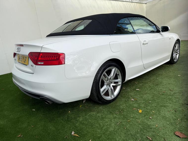 An excellent example of the elegant and sporty Audi A5 Cabriolet 2.0 TFSI S line Euro 6 (s/s) 2dr, finished in a striking white exterior. This beautifully maintained convertible offers a perfect combination of performance, luxury, and open-top driving pleasure, making it an ideal choice for those seeking style and sophistication on every journey.Key Features Include:Convertible Front and rear parking sensors Black leather seats Heated seats Cruise Control Automatic headlights Navigation Bluetooth connectivityAir conditioningAlloy wheelsElectric windowsThis vehicle comes with 3 doors, 4 seats, and has covered 119, 987 miles. It was first registered in 2015, runs on petrol, and features a Manual gearbox.The car is ULEZ compliant, HPI clear, and comes with a valid MOT until June 2026. This car has service history. What’s Included:1 year of free AA breakdown coverFree 90-day warrantyPart exchange welcomeFlexible finance optionsExtended warranties, drive away insurances, and servicing available at additional costsWe also offer nationwide delivery at an additional cost—have the car delivered directly to your door, or visit our dealership to view and collect at your convenience.Visit or Contact Us - We’re open 7 days a week? Unit E4, Middlesex Business Centre, Bridge Road, Southall, London, UB2 4AB? Contact us today to arrange a viewing, test drive, or to discuss your finance options..