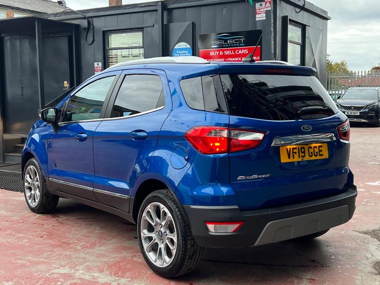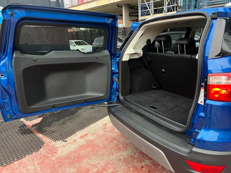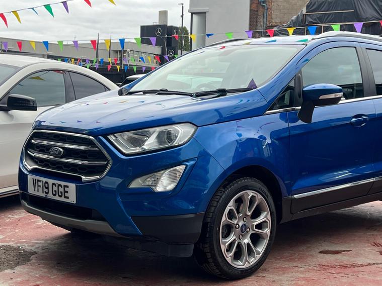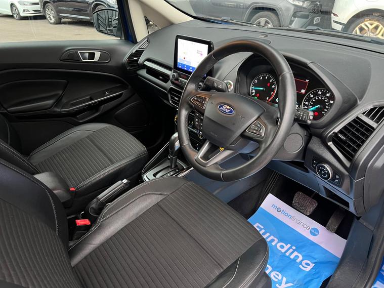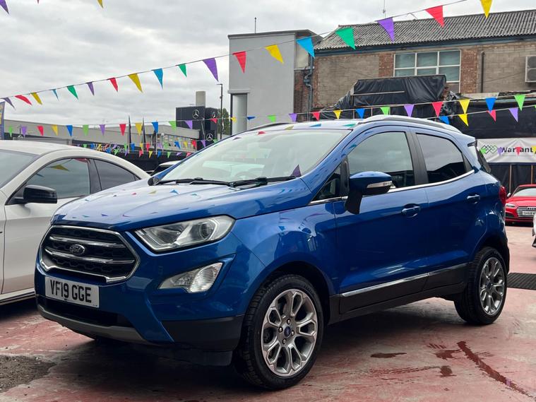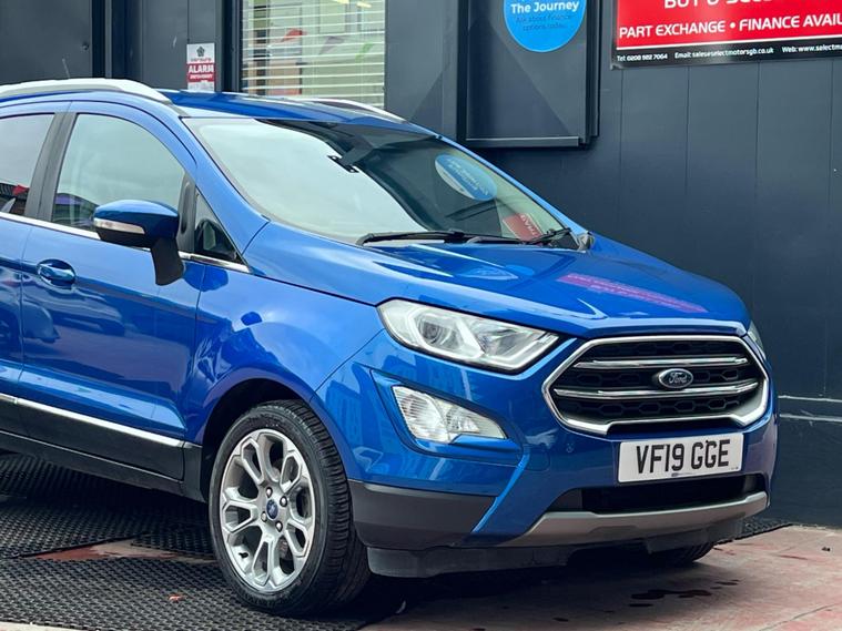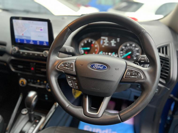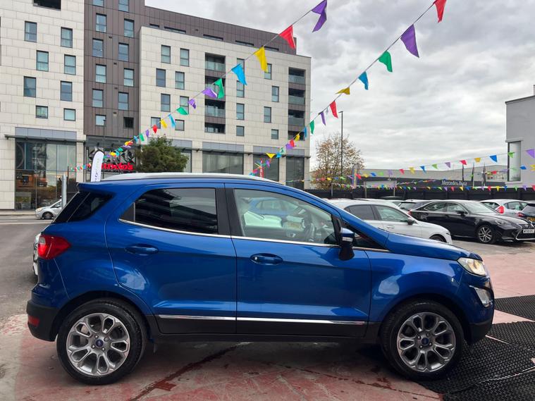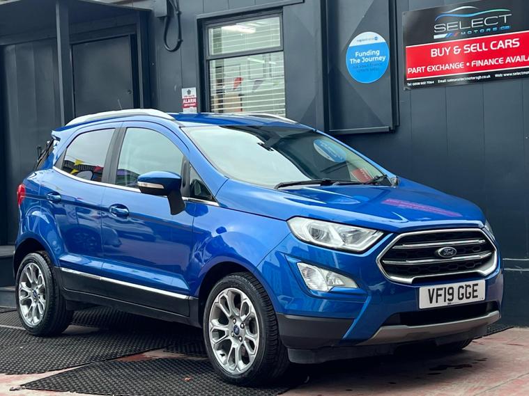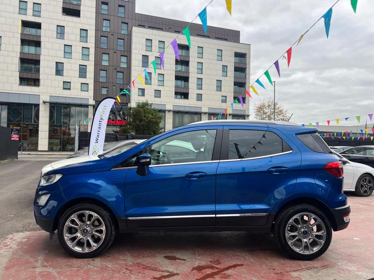 SELECT MOTORS (GB) IS DELIGHTED TO OFFER YOU THIS STUNNING FORD ECOSPORT 1.0 ECOBOOST TITANIUM 5DR IN BLUE COLOUR AND COMPLEMENTED WITH 17IN 10 SPOKE FLASH GREY MACHINED DESIGN ALLOY WHEELS. THIS VEHICLE HAS AN IMPRESSIVE SPECIFICATION WHICH INCLUDES THE FOLLOWING; SATELLITE NAVIGATION SYSTEM, CARPLAY FOR IPHONE AND ANDROID AUTOS, REVERSING CAMERA WITH SENSORS, BLUETOOTH CONNECTIVITY FOR PHONE AND MEDIA, DAB-FM/AM RADIO, ELECTRONIC AUTOMATIC TEMPERATURE AIR CONDITIONING, KEYLESS START ENGINE AND STOP PUSH BUTTON, CRUISE CONTROL WITH SPEED LIMITER, 8IN TOUCH SCREEN, ELECTRICALLY ADJUSTABLE AND FOLDING DOOR MIRRORS, TYRE PRESSURE WARNING SYSTEM. THIS VEHICLE IS ULEZ EXEMPT. WE ARE OFFERING NATIONWIDE DELIVERY ON ALL VEHICLE (PLEASE GET IN TOUCH DIRECTLY FOR DETAILS). WE CAN ALSO CONDUCT VIRTUAL VIEWINGS AND ACCOMMODATE ANY REQUESTS YOU MAY HAVE. ALL OUR ADVERTISED STOCK IS TEST-DRIVEN, INSPECTED BY OUR MECHANIC TO MAKE SURE OUR CUSTOMERS DRIVE AWAY WITH THE BEST QUALITY CARS. WE CAN PROVIDE A VIDEO WALK AROUND THIS VEHICLE UPON REQUEST., ALL OF OUR VEHICLES ARE SUPPLIED WITH A 3 MONTHS WARRANTY WITH EXTENDED OPTION. 12 MONTHS FREE AA BREAKDOWN COVER. FINANCE AVAILABLE..