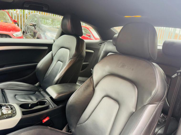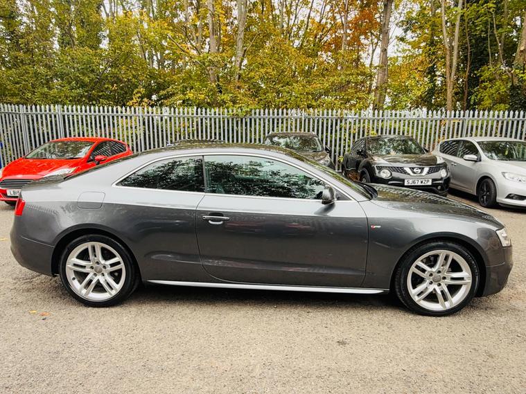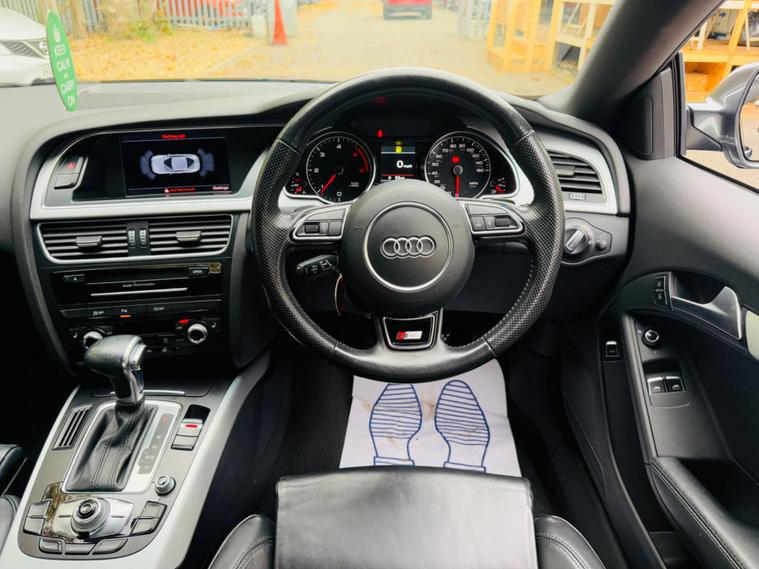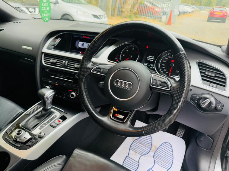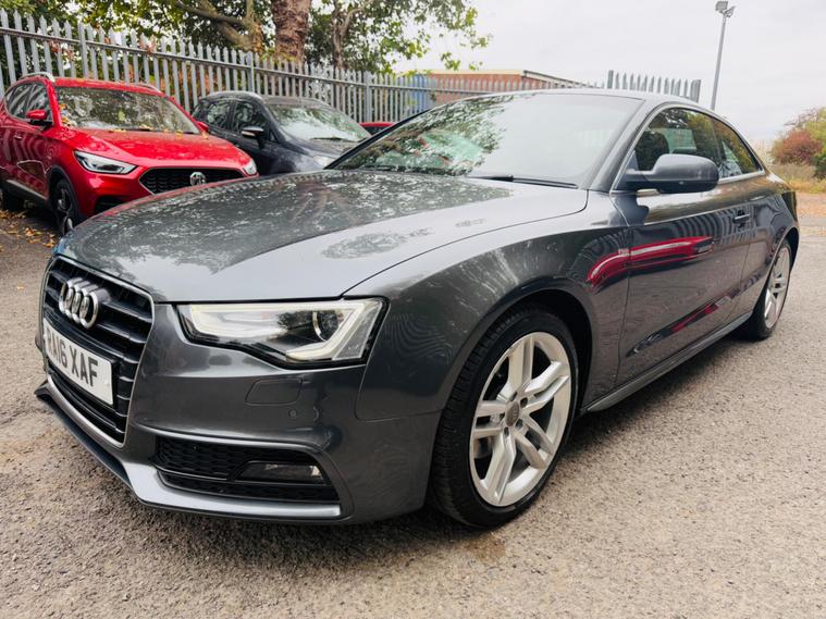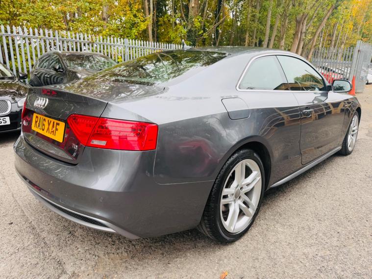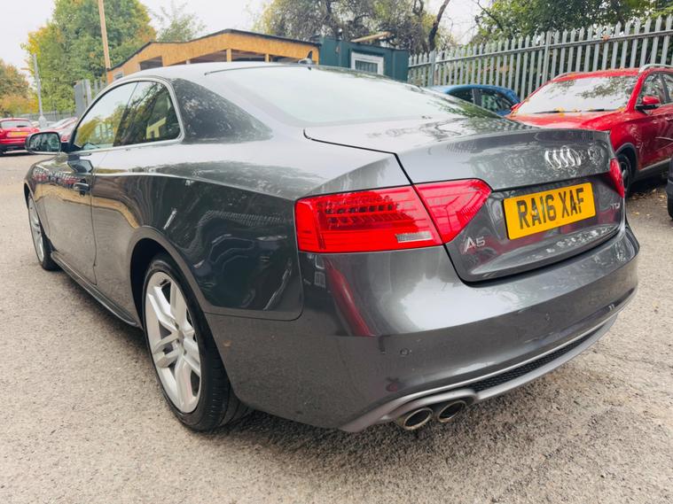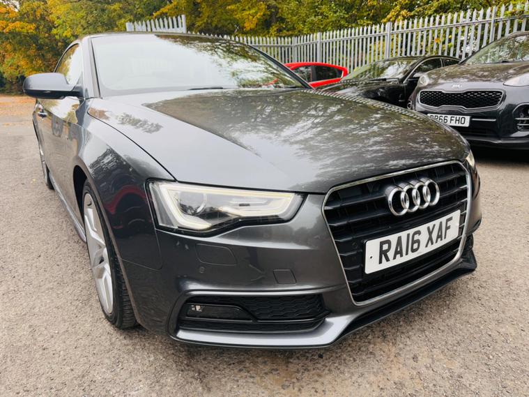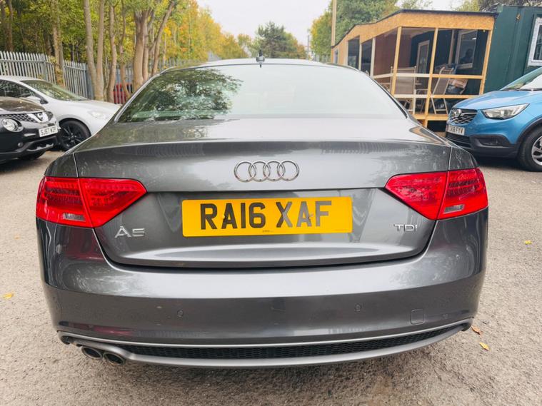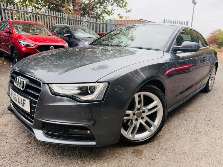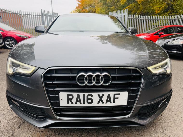GREY, SERVICE HISTORY, FINANCE AVAILABLE, NAVIGATION SYSTEM , PARKING CAMERA, LEATHER SEATS, TWO FORMER KEEPERS ONLY, CAMBELT REPLACE @ 44, 045 ON 29/04/2021, PRIVACY GLASS, START/STOP, CRUISE CONTROL, ULEZ COMPLIANT, SUPERB DRIVE, VERY ECONOMICAL, ALLOY WHEELS, CLIMATE CONTROL, VERY WELL LOOKED AFTER, VERY CLEAN IN AND OUT.This 2016 Audi A5 TDI S line presents a compelling blend of style and efficiency, boasting a powerful yet economical 2.0 litre diesel engine. As an S line model, it comes equipped with the sporty S line trim, enhancing its visual appeal. Practicality is also a strong suit, with the Audi Parking System Plus for both front and rear, ensuring effortless manoeuvring. Inside, you'll find the comfort of heated front seats and the convenience of a Bluetooth interface for mobile telephone preparation. The Bi-Xenon Plus headlights provide excellent visibility, illuminating your journeys with clarity.This Audi A5 stands out with its impressive fuel economy, achieving a remarkable 60 miles per gallon, which indicates it is more economical than many similar vehicles. Furthermore, its low CO2 emissions highlight its environmental consideration, and it sits in a low insurance group, suggesting lower running costs compared to comparable cars. The generous boot space offers ample room for luggage or shopping, making it a versatile choice for everyday use and longer trips..