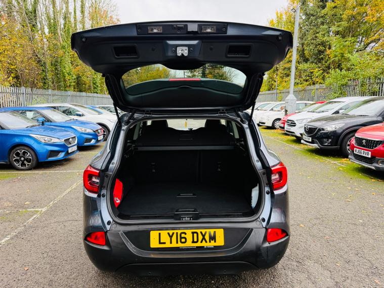 GREY, SERVICE HISTORY, FINANCE AVAILABLE, NAVIGATION SYSTEM , PARKING SENSORS, NEW CLUTUCH @ 56474 ON 05/06/2025, HALF LEATHER SEATS, SPARE KEY, INSURANCE GROUP (16/50), PRIVACY GLASS, START/STOP, CRUISE CONTROL, ULEZ COMPLIANT SUPERB DRIVE, VERY ECONOMICAL, ALLOY WHEELS, CLIMATE CONTROL, VERY WELL LOOKED AFTER, VERY CLEAN IN AND OUTThis 2016 Renault Kadjar TCe Dynamique S Nav presents a compelling proposition with its remarkably low mileage for its age, having covered just 60, 175 miles. This Euro 6 compliant 1.2 litre petrol model, registered in 2016, boasts an MOT valid until October 2026, offering peace of mind for the coming years. The Dynamique S Nav trim level ensures a well equipped experience, featuring automatic dual zone climate control for personalised comfort, and a climate pack that includes automatic headlights. Navigating and staying connected is effortless with Android Auto, while the hands free keycard allows for convenient keyless entry. Parking is made simpler with front and rear parking sensors.This Kadjar stands out with its impressive fuel economy, achieving a highlight of 49 miles per gallon, indicating it is more economical than many similar vehicles. Furthermore, its low insurance group and low CO2 emissions highlight its cost effectiveness and environmental consideration compared to other cars in its class..