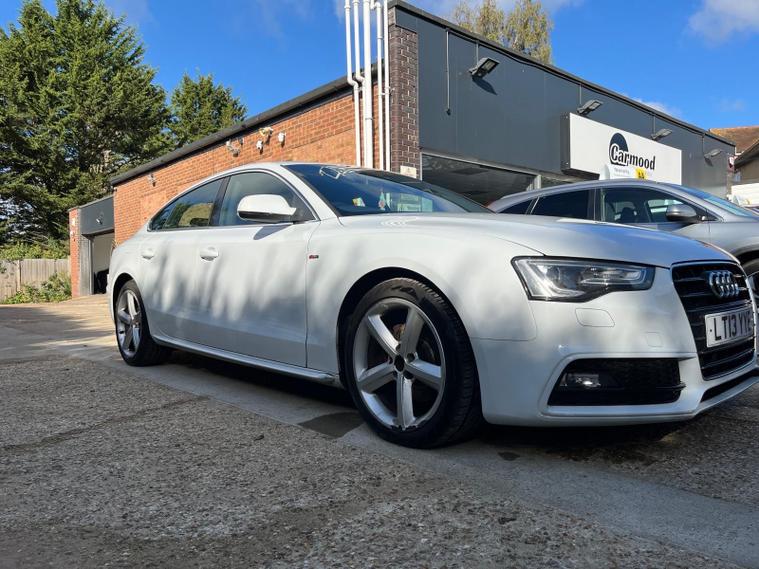 Audi A5 2.0 TDI S line Sportback Euro 5 (s/s) 5drYear: 2013Mileage: 112, 440 milesFuel Type: DieselTransmission: ManualColour: WhiteOwners: 3Price: £[your price here]⸻✅ Key Information • MOT Valid Until: July 2026 • AA Warranty: 3 MONTHS AA WARRANTY AND 12 MONTHS AA BREAKDOWN COVER • Service History: Partial • Last Service: 10th July 2025 at 111, 708 miles • Vehicle History: Clear – HPI checked • Euro Standard: Euro 5⸻? Model Highlights • Engine: 2.0L TDI Diesel (6-Speed Manual) • Trim: S line Sportback • 0–62 mph: 8.5 seconds • Fuel Economy: Excellent for its class • Drive Type: Front Wheel Drive⸻? Features & Equipment • Audi Connect with Bluetooth Connectivity • Digital TV & DAB Radio Reception • Adaptive Cruise Control with Brake Guard • Audi Parking System Plus (Front & Rear Sensors) • S line Sport Styling Package • LED Daytime Running Lights • Dual-Zone Climate Control • Half-Leather S line Sports Seats • Multi-Function Leather Steering Wheel • Alloy Wheels – S line Design⸻? DescriptionThis 2013 Audi A5 2.0 TDI S line Sportback combines sporty design with practicality and advanced technology. With MOT valid until July 2026 and a 3-month AA warranty with 12 months AA breakdown cover, it provides outstanding peace of mind.The car has been well maintained, with its last service completed in July 2025 at 111, 708 miles. Powered by a 2.0-litre TDI diesel engine, it delivers a balance of strong performance (0–62 mph in 8.5 seconds) and excellent fuel economy.The Audi Parking System Plus, adaptive cruise control, and Audi Connect with Bluetooth ensure a comfortable, connected, and safe drive. Offering generous boot space and sleek S line styling, this A5 Sportback stands out as a refined, practical, and dynamic choice for drivers seeking quality and value..