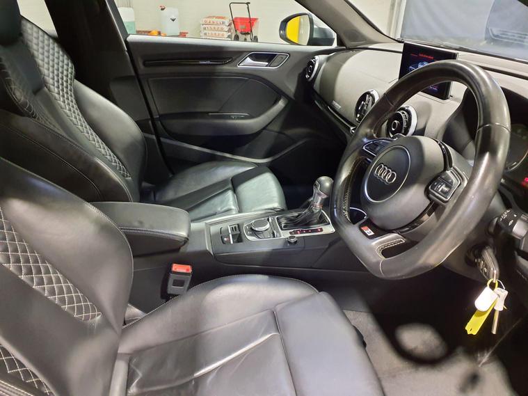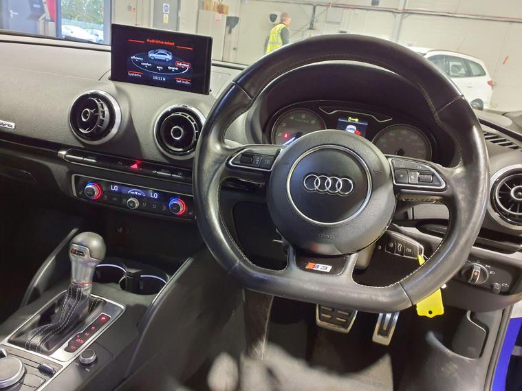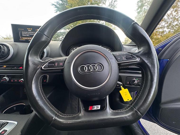 Now Available – 2016 Audi S3 2.0 TFSI S Tronic quattro Euro 6 (s/s) 4dr (Nav)This 2016 Audi S3 Saloon delivers the perfect mix of power, precision, and everyday practicality. Powered by a 2.0L TFSI turbocharged petrol engine producing 300PS, paired with the S Tronic automatic gearbox and quattro all-wheel drive, it offers outstanding performance and control in all conditions. Finished in metallic blue, this well-maintained example has covered just 55, 000 miles, has had 3 owners, and is fully ULEZ compliant.Registration: SV16VXNYear: 2016 (16)Mileage: 55, 000 milesFuel Type: PetrolTransmission: Automatic (S Tronic)Drivetrain: quattro (All-Wheel Drive)Colour: BlueOwners: 3 OwnersULEZ CompliantKey Features:2.0 TFSI Turbocharged Petrol Engine (300PS) – Impressive power and efficiencyS Tronic Dual-Clutch Automatic Gearbox – Lightning-fast gear changesquattro All-Wheel Drive System – Superb grip and confidence in all conditionsEuro 6 Compliant – Fully ULEZ-friendlyS3 Styling Package – Sporty body kit, quad exhausts, and S3 badgingFull Leather S Sport Seats – Premium comfort with excellent supportHeated Front Seats – Added luxury in cold weatherAudi MMI Navigation Plus – Integrated sat nav and infotainment systemBluetooth, USB & DAB Radio – Stay connected on the goBang & Olufsen Sound System (if equipped) – Premium audio experienceDual-Zone Climate Control – Comfort for both driver and passengerFront & Rear Parking Sensors – Hassle-free parking and manoeuvringLED Headlights & DRLs – Sharp and modern illuminationFlat-Bottom S3 Steering Wheel – Sporty and comfortable design18'' Diamond-Cut Alloy Wheels – Distinctive S3 lookThe Audi S3 Saloon offers thrilling performance with everyday practicality, blending premium comfort, sharp handling, and stunning looks. With ULEZ compliance, it’s as easy to own in the city as it is fun to drive on the open road.Flexible finance options availablePart exchange welcomeContact us today to arrange a viewing and test drive..