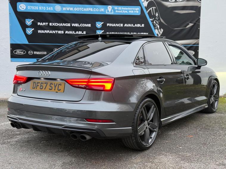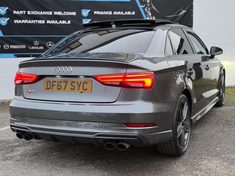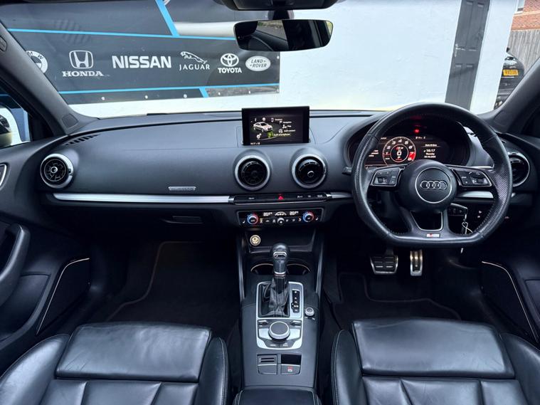 This 2018 Audi S3 TFSI Black Edition offers a compelling blend of performance and sophisticated technology. As a Euro 6 compliant model, this four wheel drive vehicle is powered by a potent 2.0 litre petrol engine, delivering an exhilarating driving experience. The Black Edition trim enhances its appeal with striking LED headlights, complemented by dynamic LED rear lights and indicators. Inside, you'll find comfort and convenience with Dual-Zone Electronic Climate Control and the impressive Bang and Olufsen sound system, ensuring an immersive audio experience. Connectivity is seamless thanks to the integrated Bluetooth interface, while the Light and Rain Sensor automatically manages headlights, providing peace of mind on every journey.The Audi S3 TFSI Black Edition stands out with its impressive performance figures. Achieving 0-62mph in just 4.6 seconds, this vehicle demonstrates a level of acceleration that surpasses many others in its class. Furthermore, its fuel economy is noteworthy, achieving up to 44 miles per gallon, which indicates a more efficient and cost effective driving experience compared to similar models. This combination of rapid acceleration and commendable fuel efficiency makes the 2018 Audi S3 TFSI Black Edition a truly desirable and capable car..