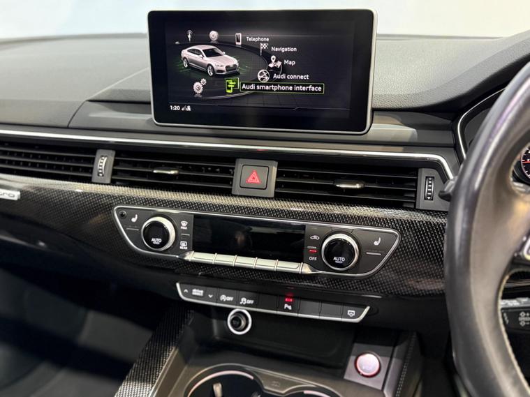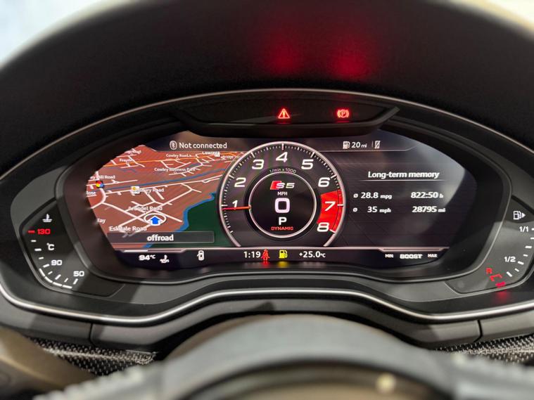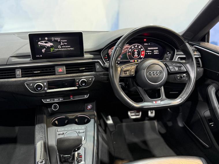 With only 55000 miles on the clock, this 2017 Audi S5 is a superb example of a performance vehicle with low mileage for its age. The S5 is equipped with a 3.0L petrol engine and a four-wheel-drive drivetrain, ensuring a dynamic driving experience. This model meets Euro 6 emission standards. It also features the Driver Assistance Pack - Tour, which includes Adaptive Cruise Control, enhancing convenience and safety on longer journeys. The Light and Vision Pack, complete with LED headlights, provides excellent visibility. The inclusion of a Panoramic Glass Sunroof, which can be opened, adds an extra element of enjoyment to every drive.The S Suspension with Damping Control improves handling and ride comfort, while Dynamic Steering offers precise control. The spacious boot is a real advantage, providing ample room for luggage, shopping, or sports equipment. The impressive acceleration, achieving 0-60mph in just 4.5 seconds, demonstrates how this car delivers thrilling performance that surpasses many similar vehicles..