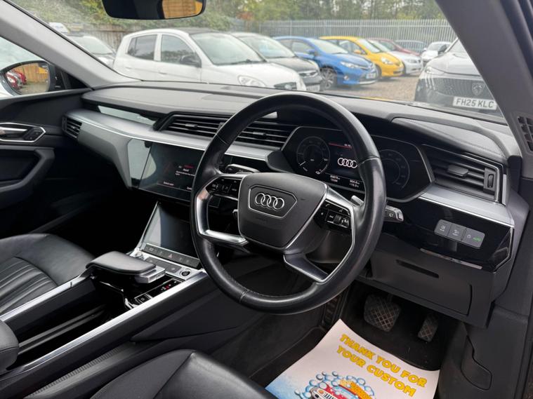 This 2021 Audi e-tron Technik is a superb example, having been owned by only one person since new. This electric vehicle boasts Four Wheel Drive for confident handling and a 71 kWh battery offering a maximum range of 194 miles when new. Charging is convenient, with a full charge at home taking approximately 9 hours and 10 minutes using a 7kW charger, while rapid public charging can replenish the battery from empty to 80% in just 34 minutes. Inside, you'll find luxurious heated front seats, with the driver's seat also featuring electric adjustment and a memory function. Comfort is further enhanced by 2-zone automatic air conditioning, and parking is made easier with a rear view camera. The vehicle is equipped with LED headlights, providing excellent visibility.The Audi e-tron Technik offers a refined driving experience, and its features highlight its superior quality compared to other vehicles in its class. The generous boot space ensures you have ample room for luggage or shopping. This combination of advanced technology, comfort features, and practical space makes this Audi e-tron a compelling choice for those seeking a premium electric SUV..