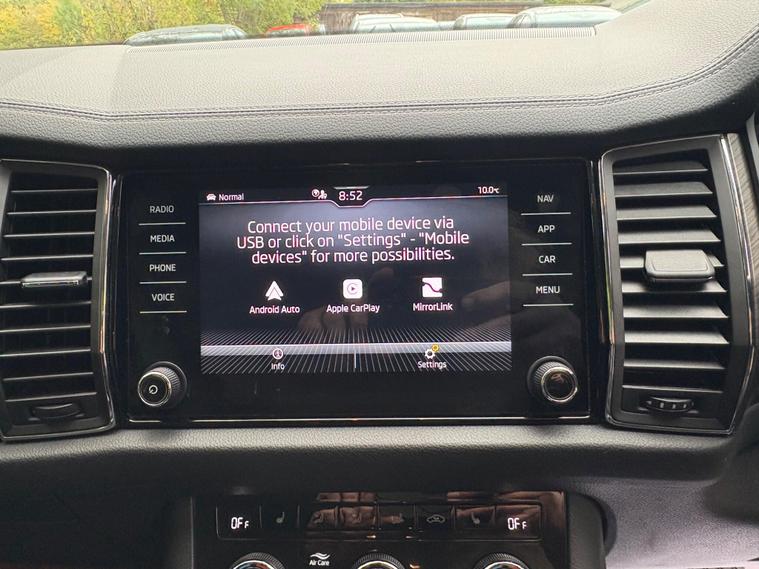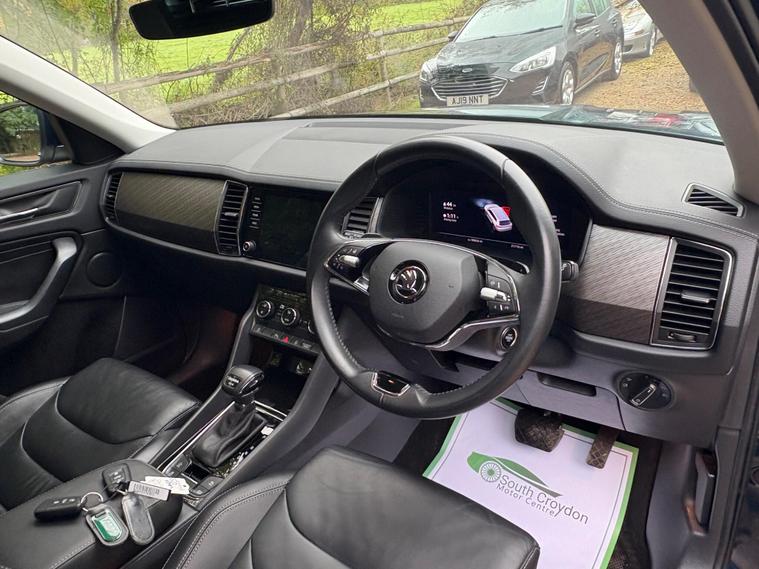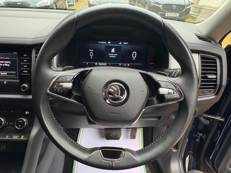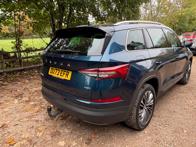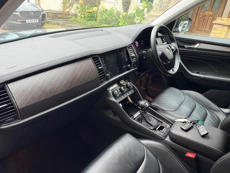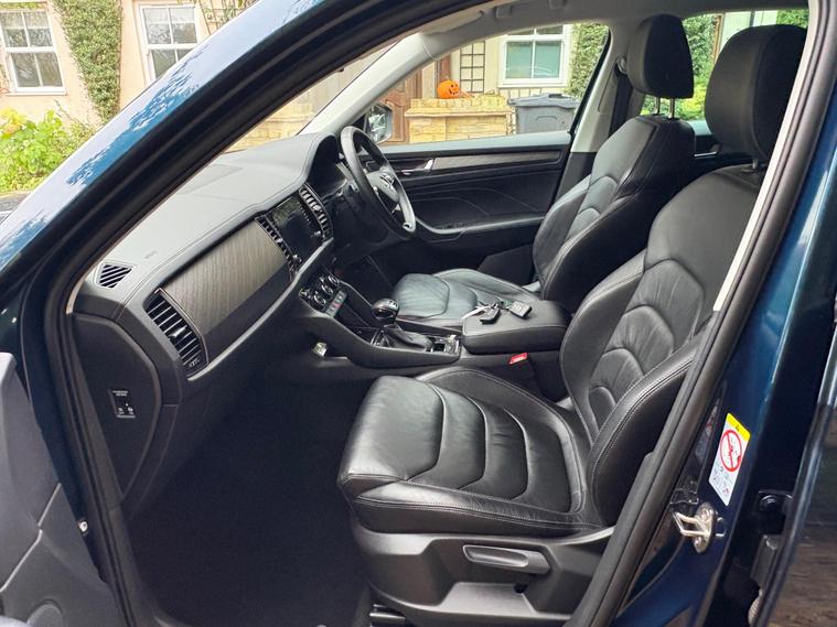 This 2023 Skoda Kodiaq TDI SE L Executive is a superb example, having had only one owner since new. This seven seat, four wheel drive SUV is powered by an efficient 2.0 litre diesel engine and meets Euro 6 emissions standards. It comes equipped with a host of desirable features, including front and rear parking sensors, a rear view camera, and heated front seats for added comfort. The electrically adjustable driver's seat with memory function ensures you can always find your perfect driving position, while Bluetooth connectivity keeps you connected on the go.Experience impressive performance with this Kodiaq, capable of accelerating from 0 to 60 miles per hour in just 7.6 seconds. This swift acceleration, combined with its spacious seven seat layout and four wheel drive capability, makes it a versatile choice for families and adventurers alike. The inclusion of features like heated seats and parking assistance further enhances its appeal, offering a more comfortable and convenient driving experience compared to many other vehicles in its class..