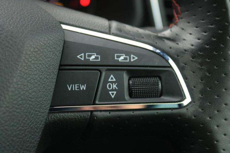 - Steering Wheel - Flat-Bottomed Perforated Leather with Red Stitching and FR Logo