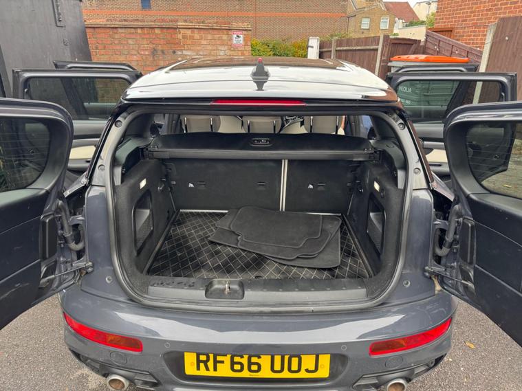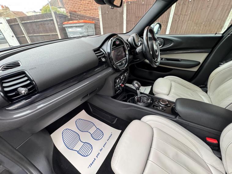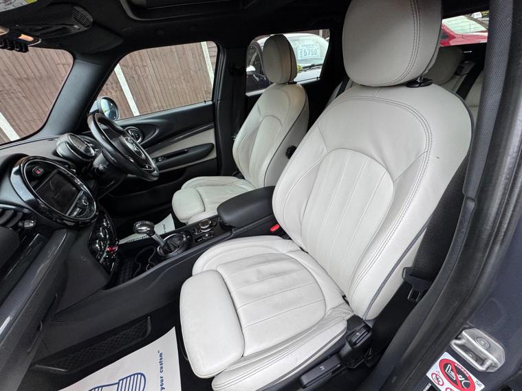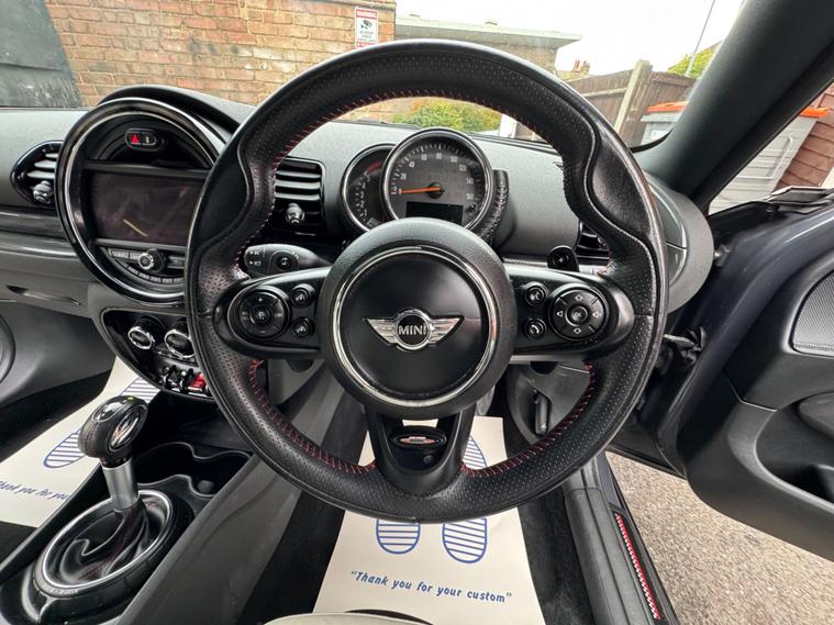This MINI CLUBMAN Cooper S features, Finished in modern Grey colourway, John Copper Works Chilli pack, plus lots of rare specification on board this Mini, Finest lounge Heritage leather with heated seats, fixed twin panoramic sunroof ( non opening), piano black surfaces with anthracite headlining, LED headlamps, Active radar linked cruise control with lane assist in driver pack, JCW aerodynamic kit, Inc rear spoiler, Bluetooth phone charger, twin zoned climate AC, heated front screen, five services recorded including our PDi, Both keys supplied, October 2026 MOT, , Road tax band C at only 35 pounds per year, Rear parking sensors, Sat Nav/Bluetooth/CD Player, HPI clear with certificate, No admin fees to pay, All Included in the price is a 12 month warranty with the first month given as unconditional, and then a further 11 months covering the most major parts, driveaway insurance available (Ts & Cs apply.